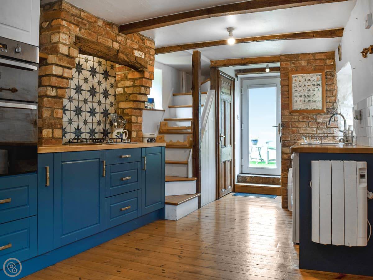Downstairs, there's a living room with a woodburning stove, a separate dining room, and a kitchen. It has a washing machine, a dishwasher, and WiFi. Bedding and towels are included. We can provide a cot and a highchair.