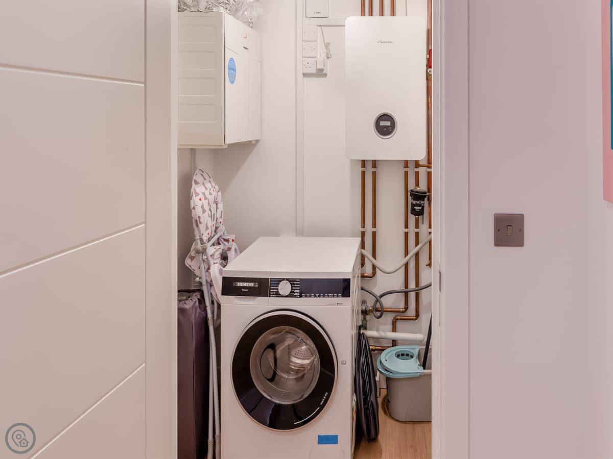 The apartment has a washing machine and dishwasher. Bedding and towels are included. There's on-site parking and an electric vehicle charger. We can provide a cot and highchair if you need them. No pets.