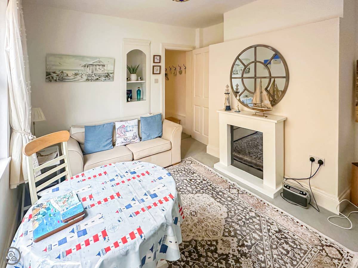 Ocean Breeze is in Paignton, right on the seafront. It's a ground floor flat, so the main door opens straight into the living area. No stairs.