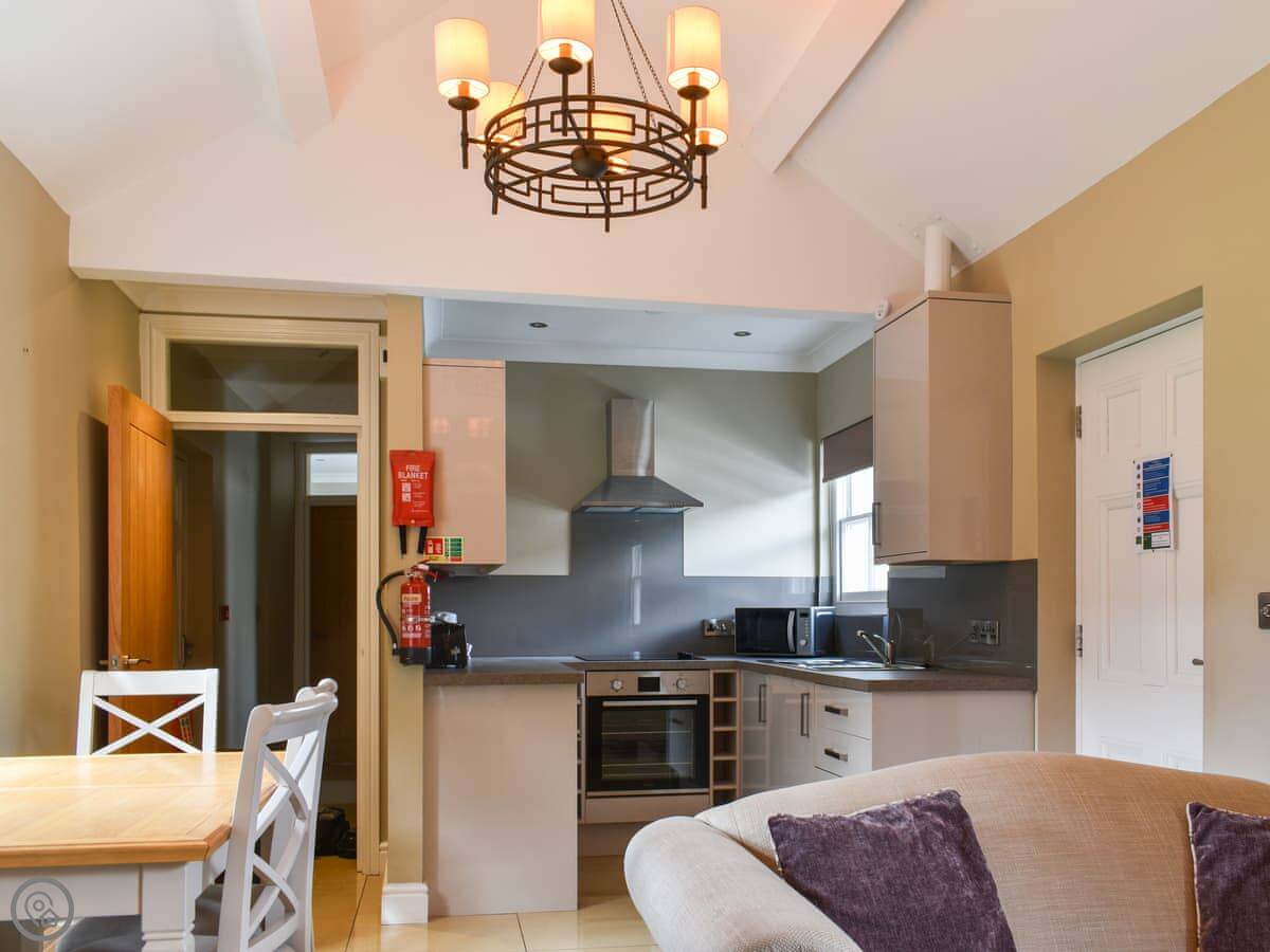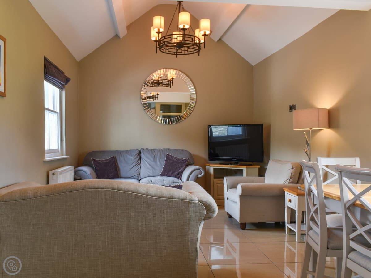 It's got a 5 Star rating, which means it's well-fitted and in good order. The living area is open plan with a kitchen. There's a Smart TV, a washing machine, and parking on site. All bedding and towels are included.