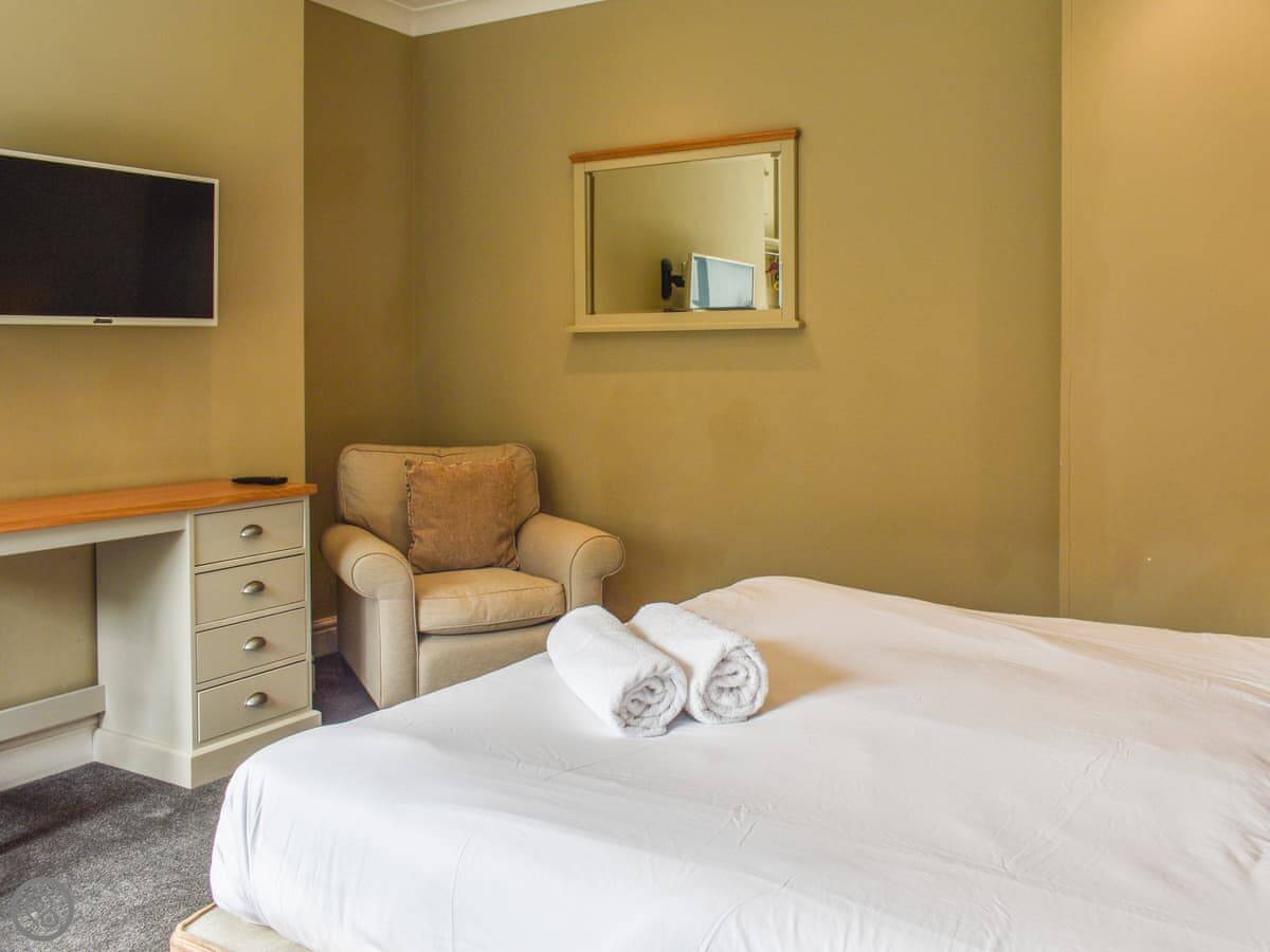 This is Flat 3E. It's a one-bedroom ground floor apartment in Aberystwyth. Sleeps two, and you can bring one dog.