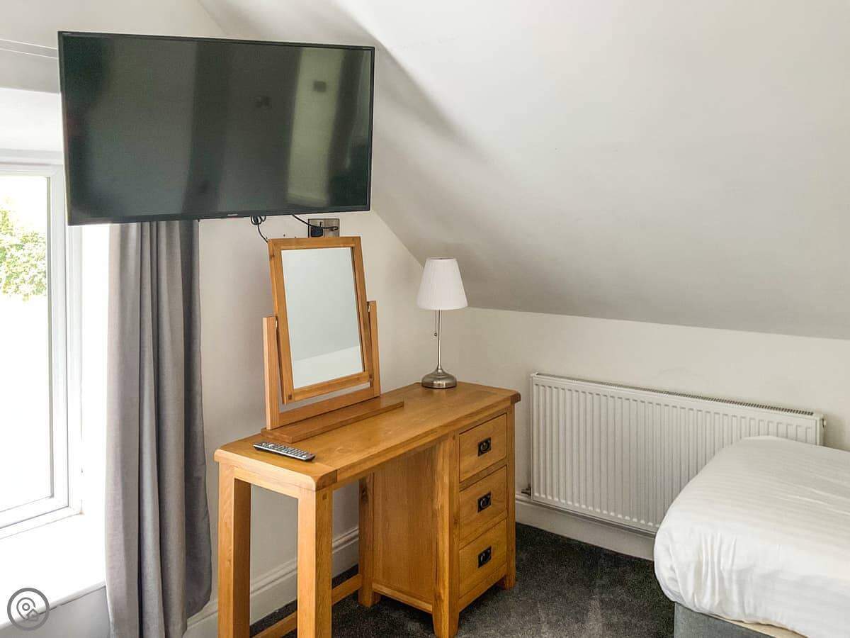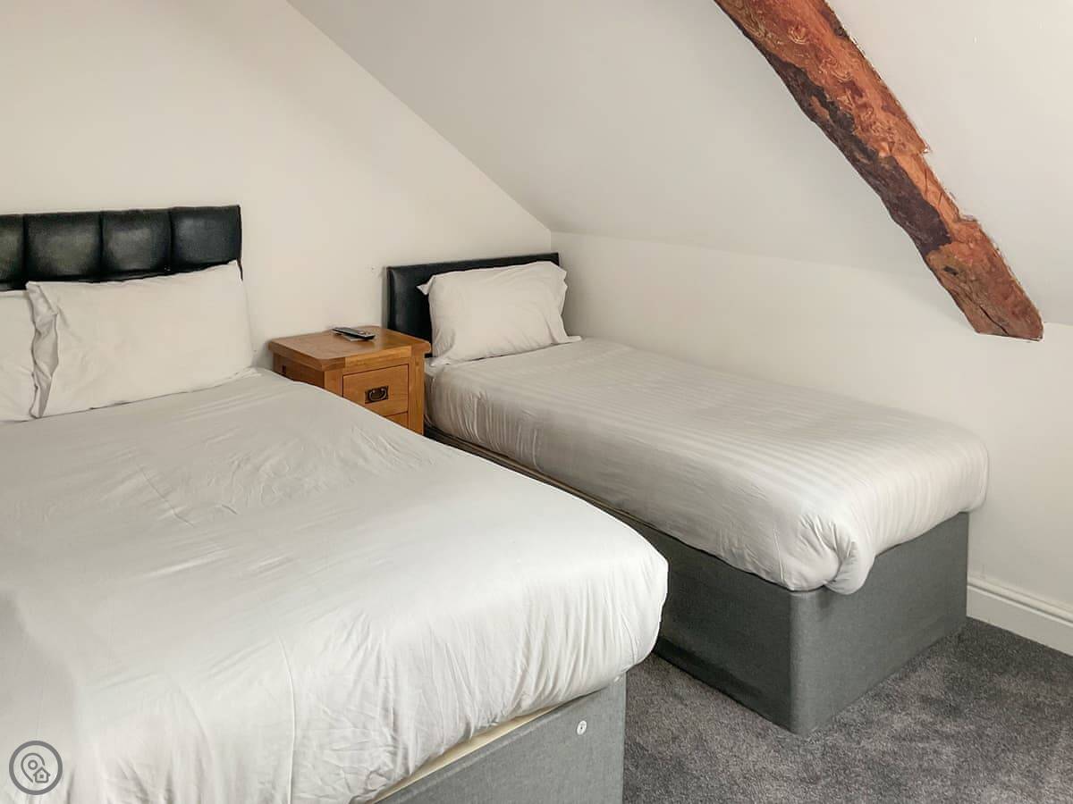 Upstairs there are two family rooms. Each has a double bed and a single bed in it. The stairs are quite steep, being part of the old barn.