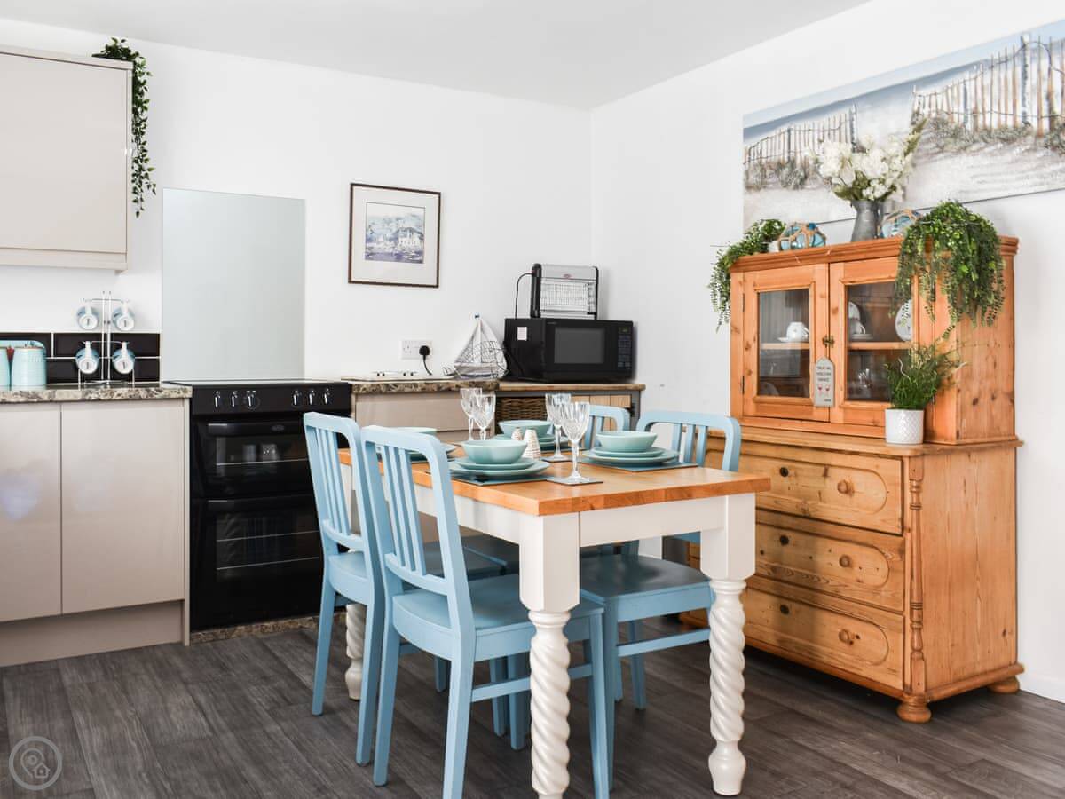 It's got a 4 Star rating, so it's comfortable and well-equipped. The kitchen has what you need. Bedding and towels are included. There's a dishwasher, TV, and WiFi. We provide a cot and a highchair if you're bringing little ones.