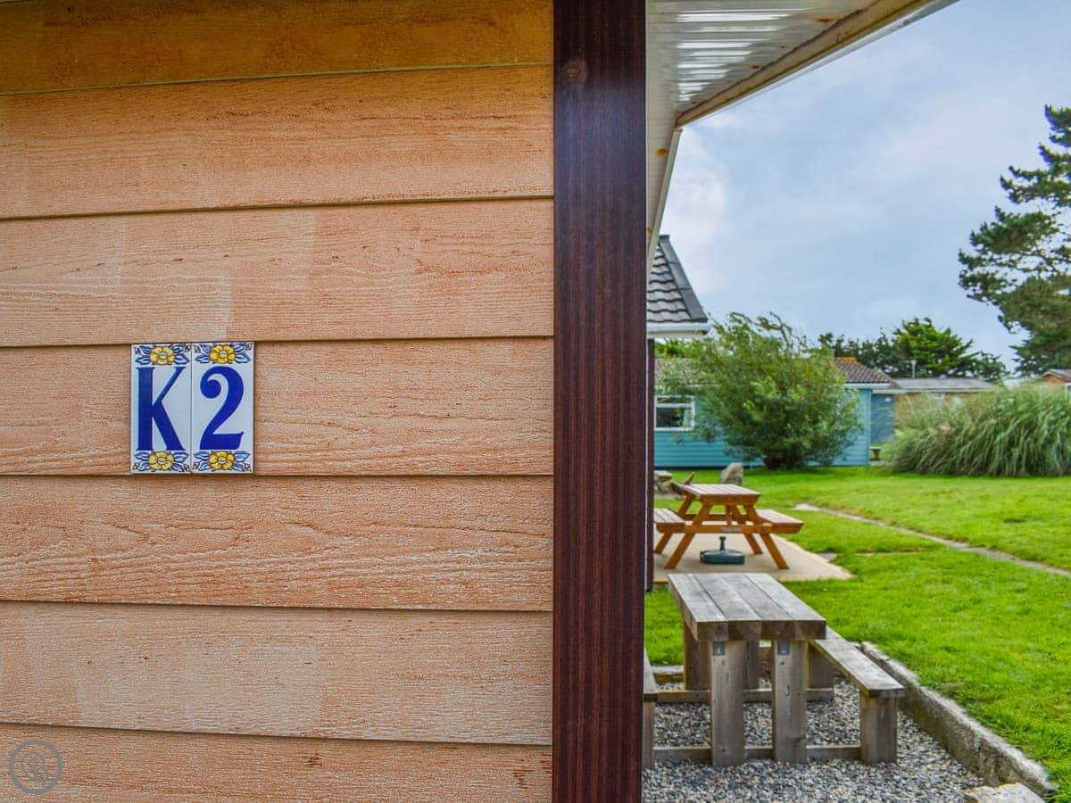 K2 Cosy Lodge is on the Atlantic Bays park near St Issey. It's a detached lodge, so no one's attached to the sides of you. It sleeps five, with two bedrooms and one bathroom. It's a 3 Star place, so it's clean and tidy but not fancy.