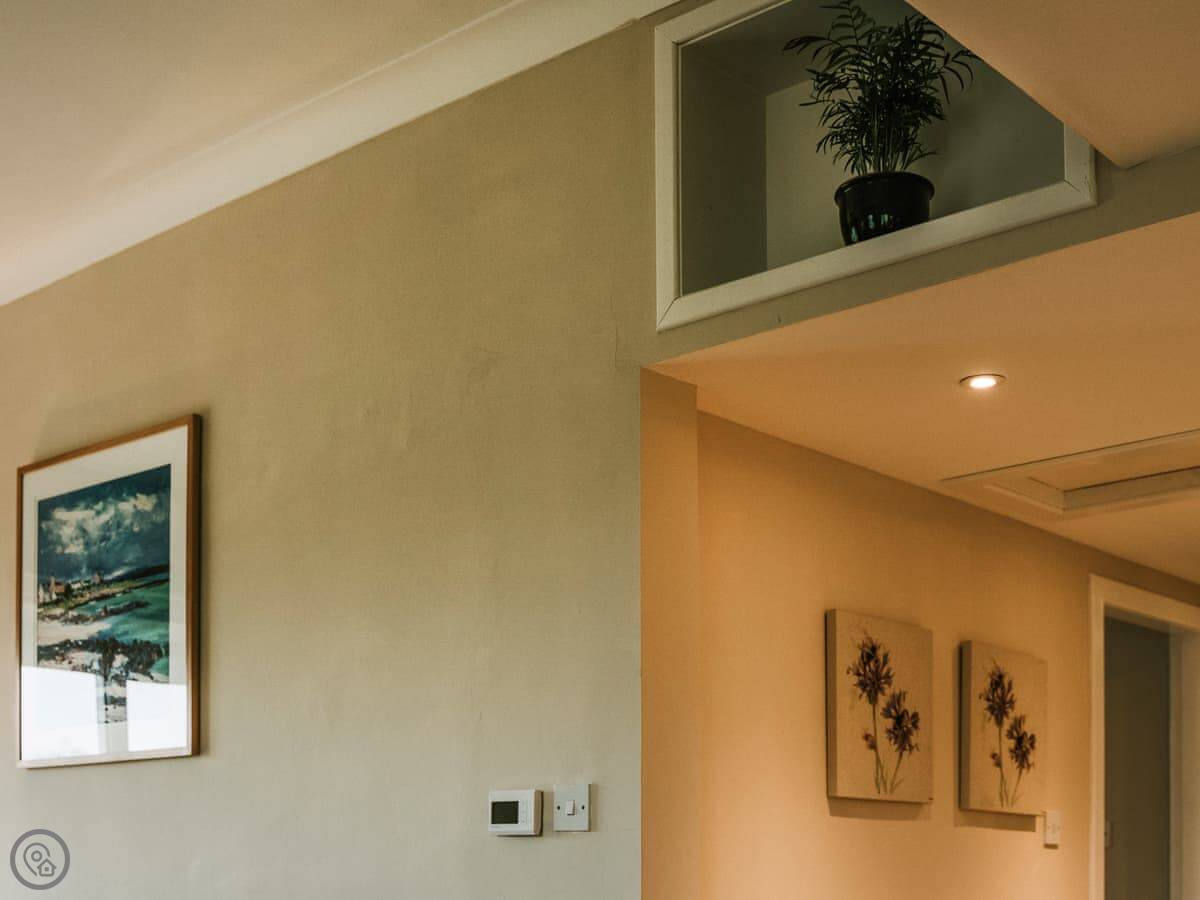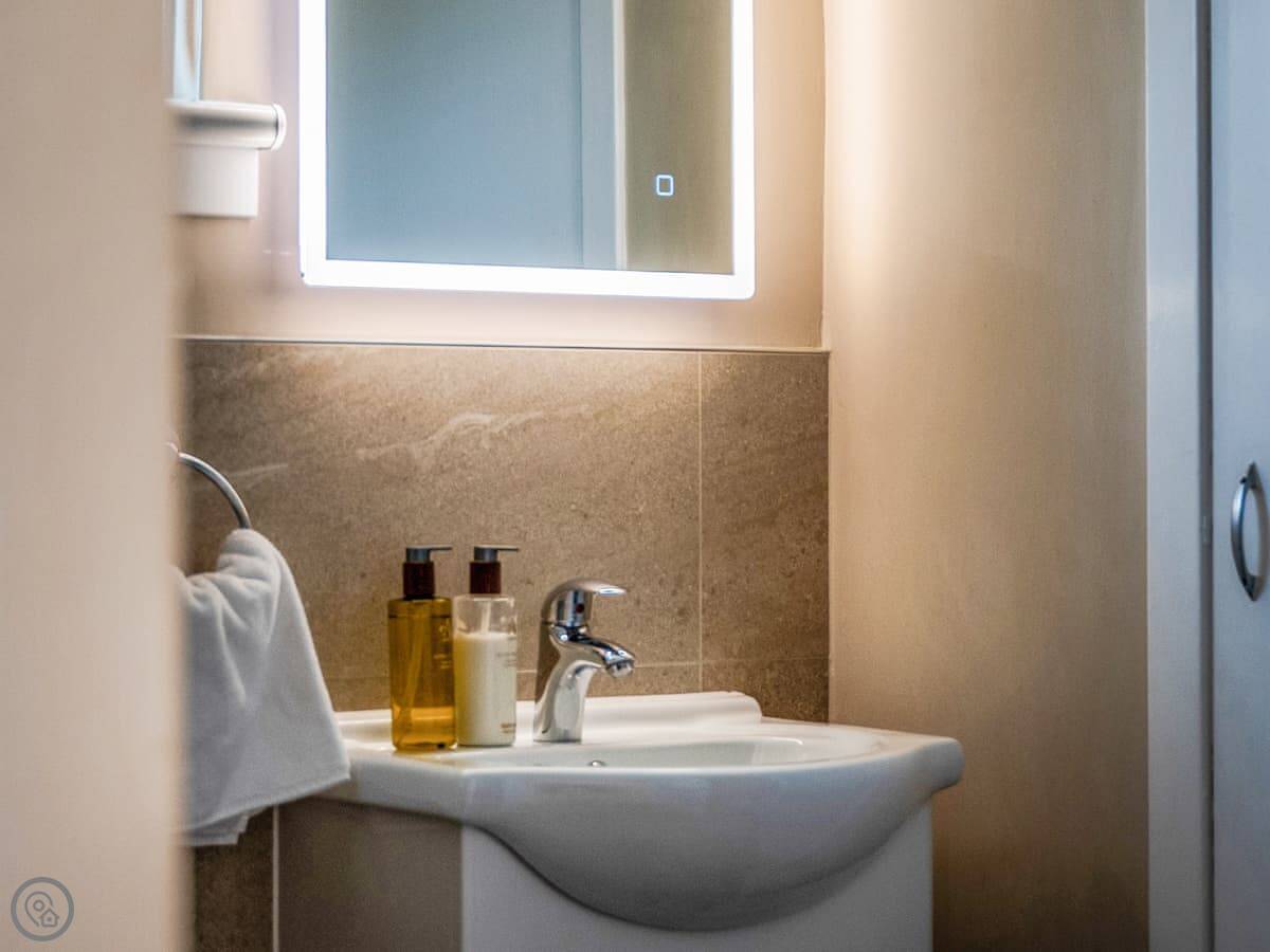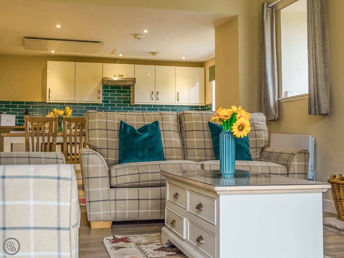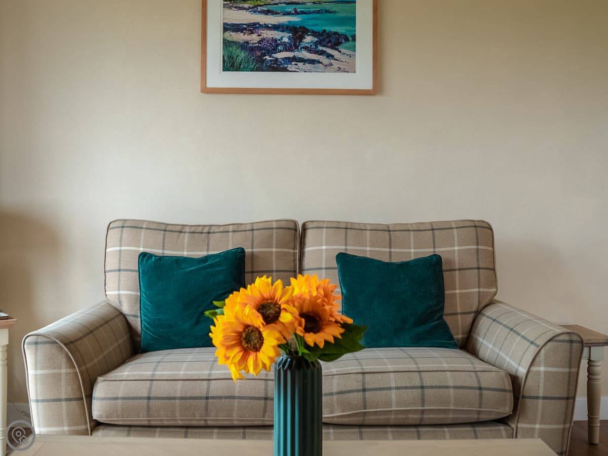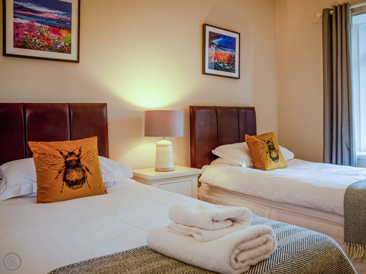 It sleeps six. Two bedrooms: one double, one twin. There's also a double sofa-bed in the open-plan living area if you need it. One bathroom. The stairs to the bedrooms are a proper cottage staircase, so they're narrow and a bit steep.
