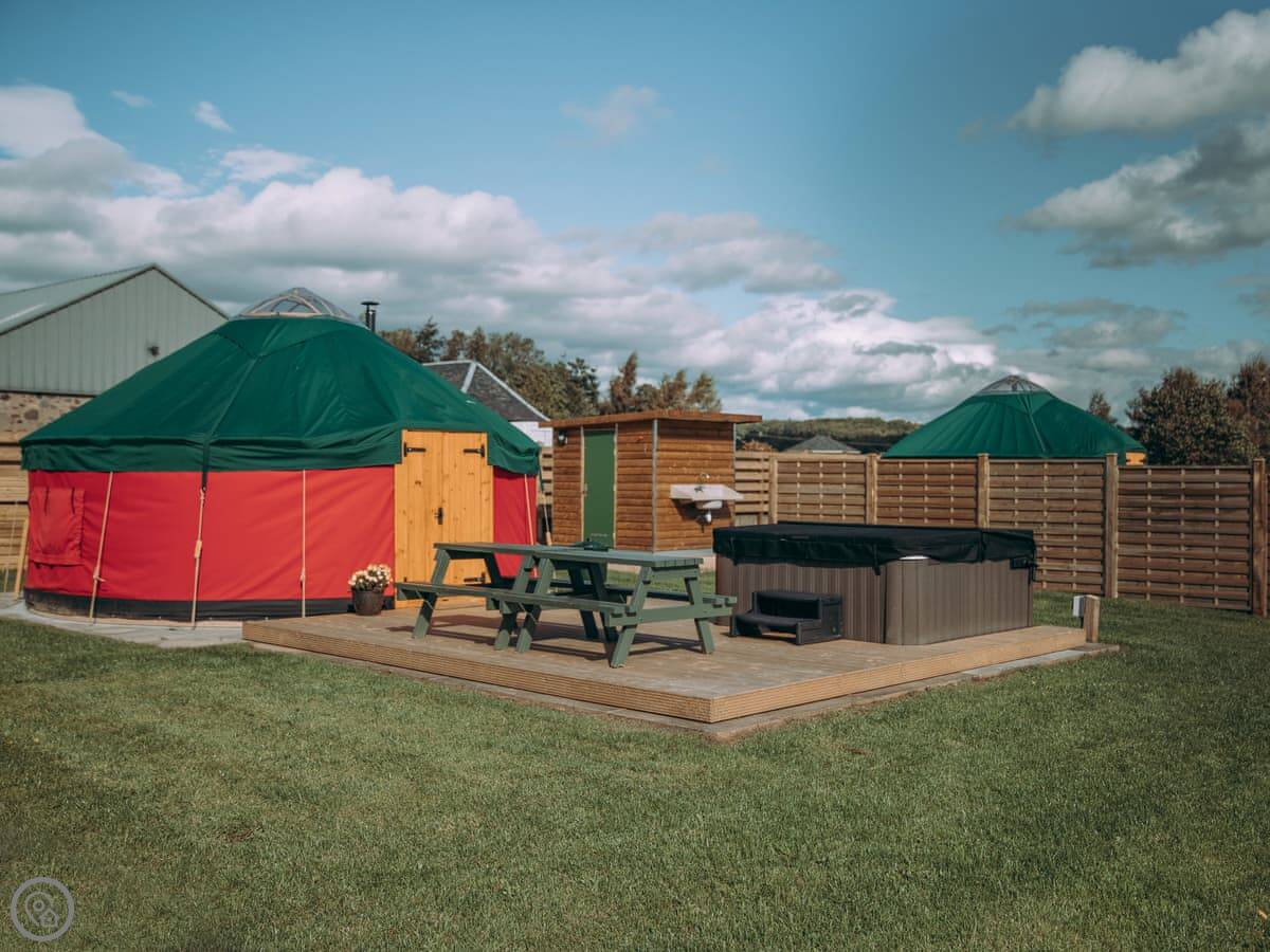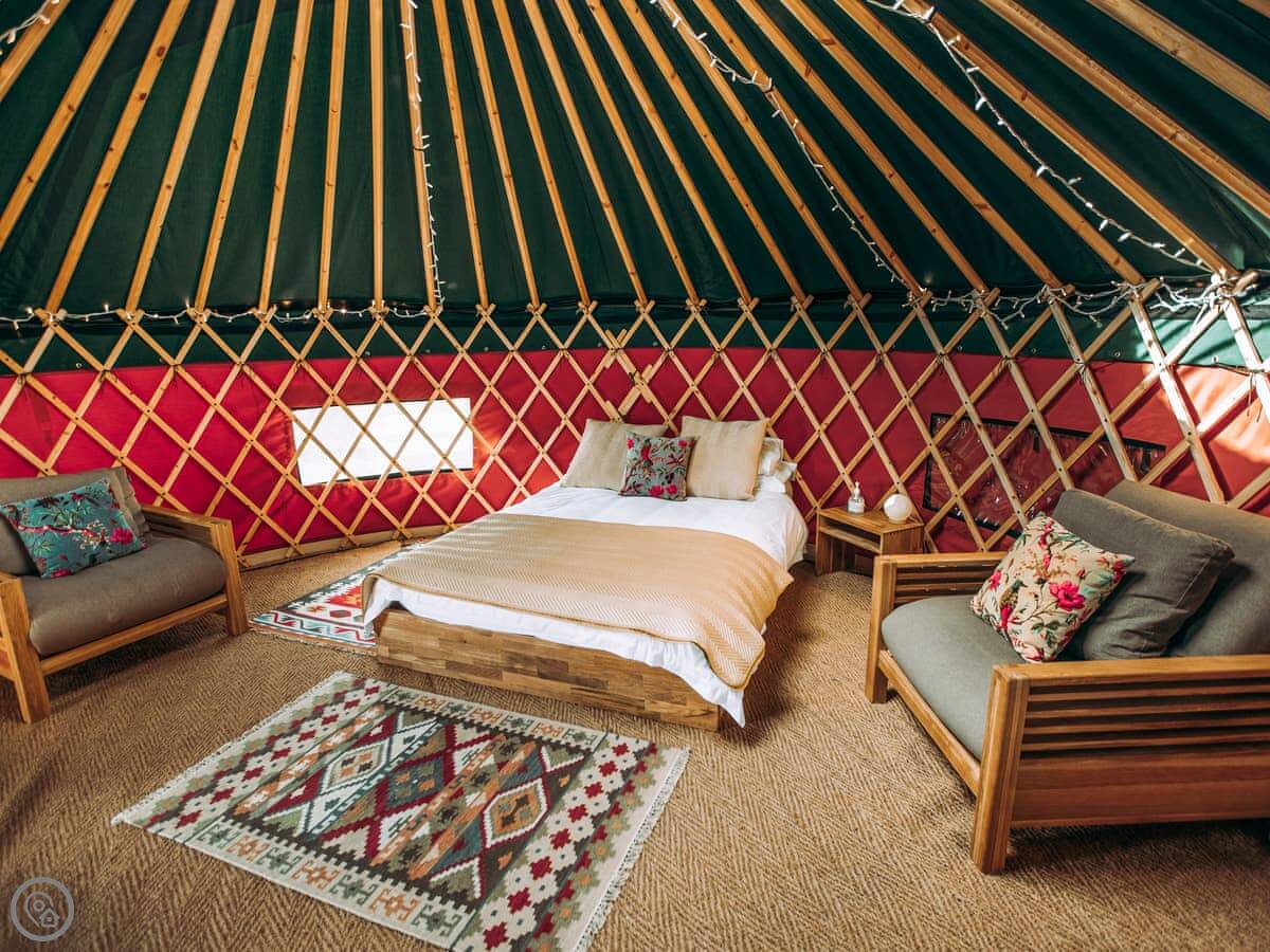 This is Moss Yurt, at Balgowan in Perthshire. It’s a proper glamping set up, which basically means you’re in a big, furnished tent but with proper facilities. It’s detached in its own space.