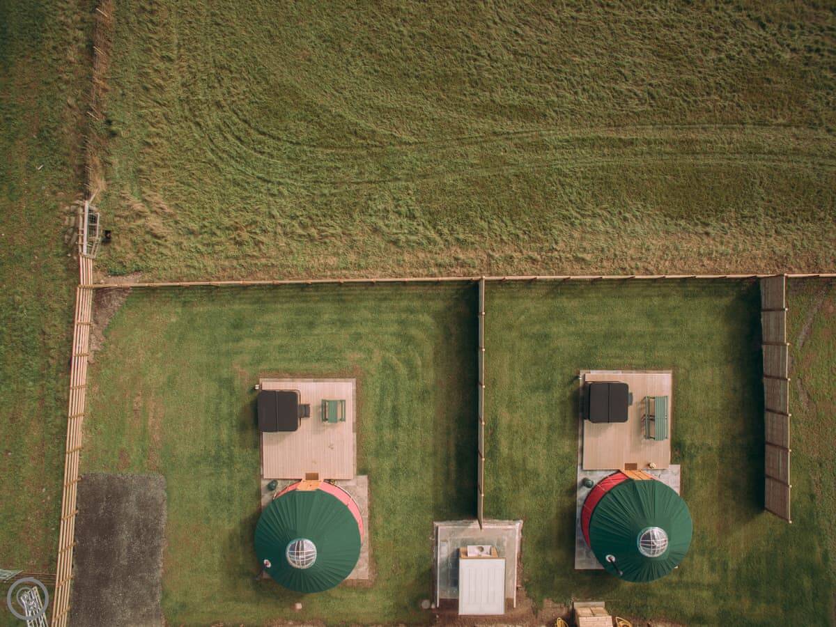 Outside, there's a hot tub. That's for your use only. For cooking, there's a dedicated BBQ hut with a gas BBQ, a microwave, a small fridge and a kettle. There's a sink out there for washing up. You share that sink area with the yurt next door.