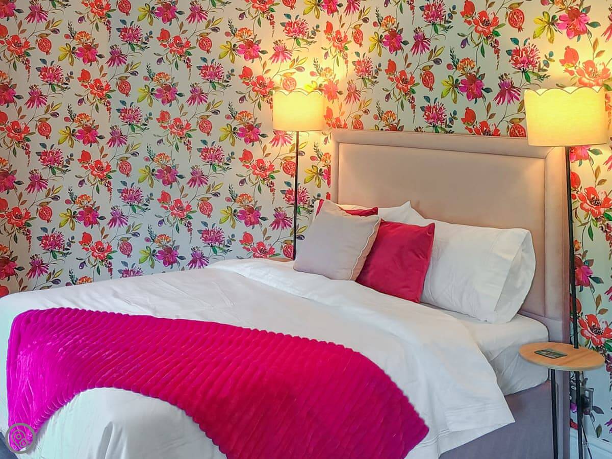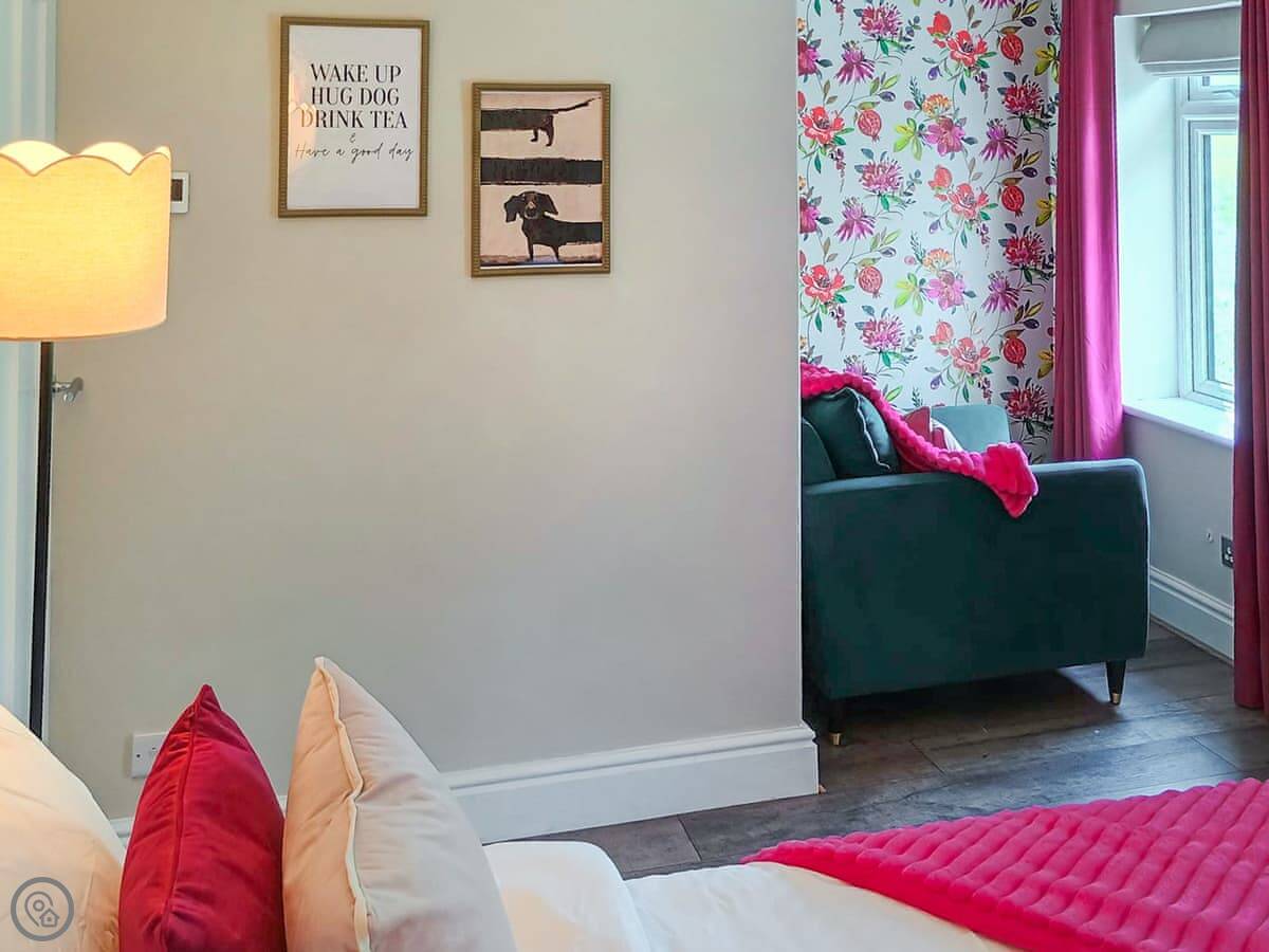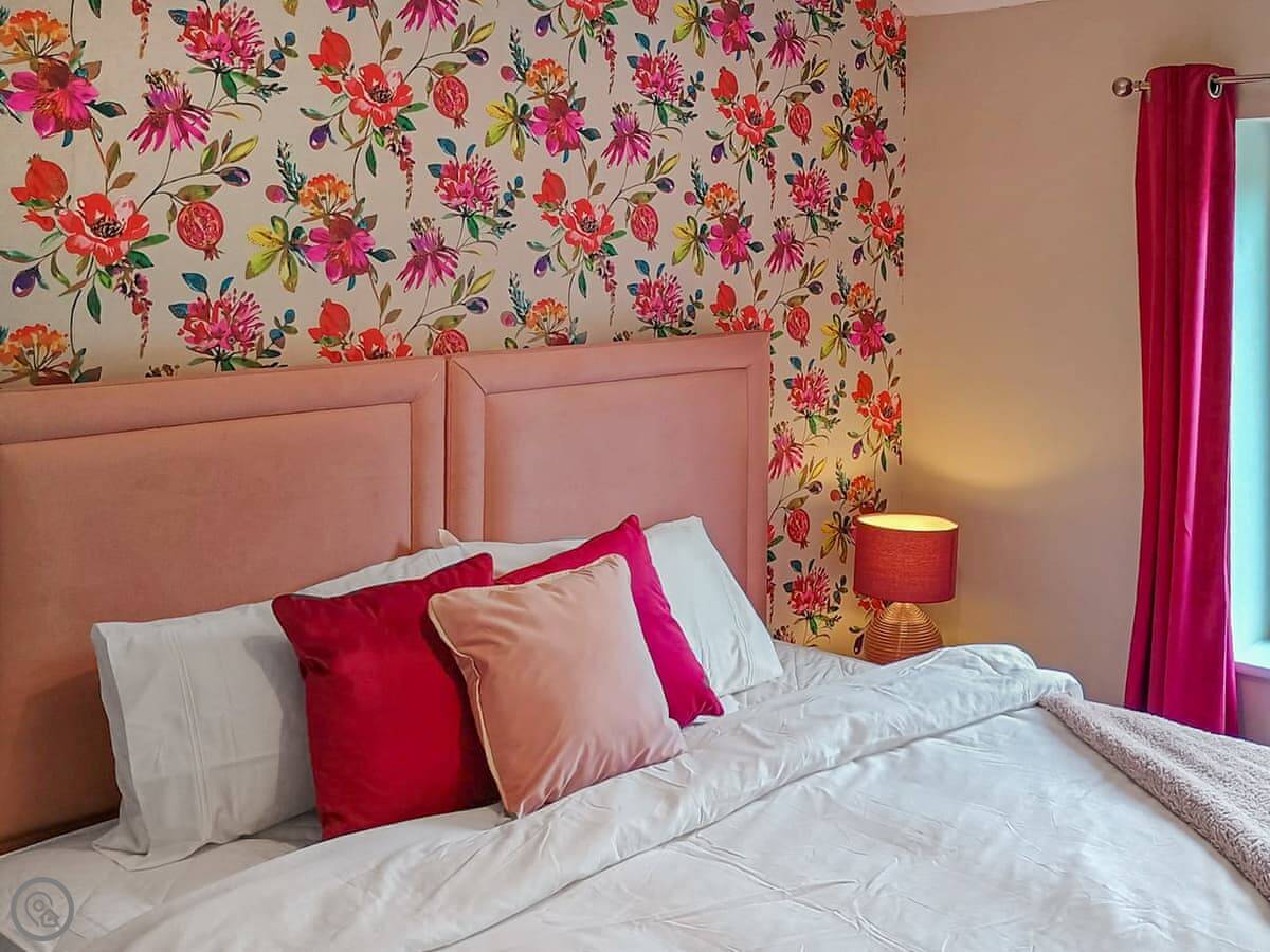 It sleeps four, in two bedrooms. One has a kingsize bed and looks out over the fields. The other has twins and you can see the little steam trains of the Weardale Railway going by. There's one bathroom upstairs.