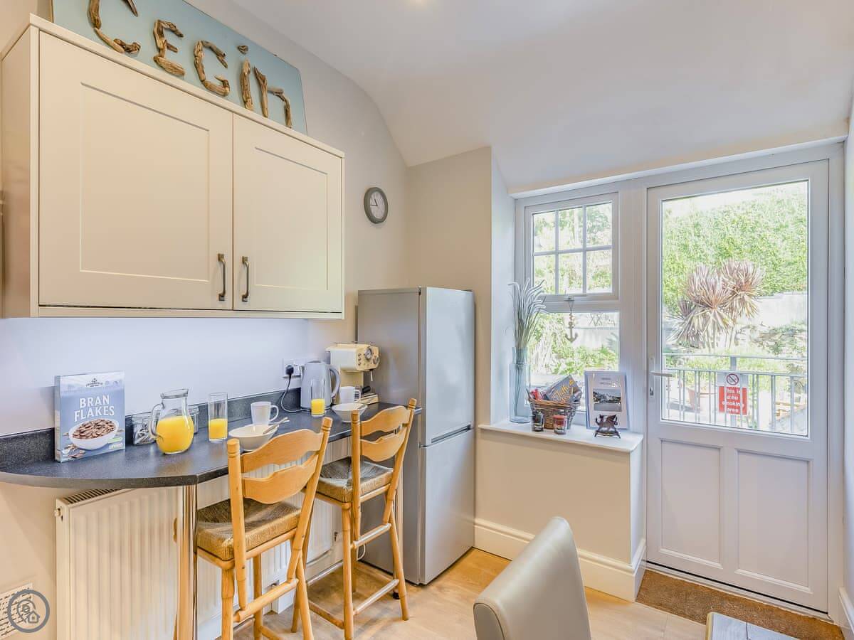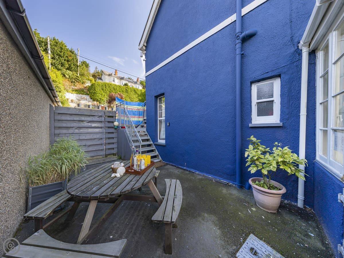 Pencartref is in Aberdovey. It's a first and second floor apartment in a big Edwardian house. You get the bit of garden out the back to yourselves. The beach is about two minutes away. There's parking for two cars.