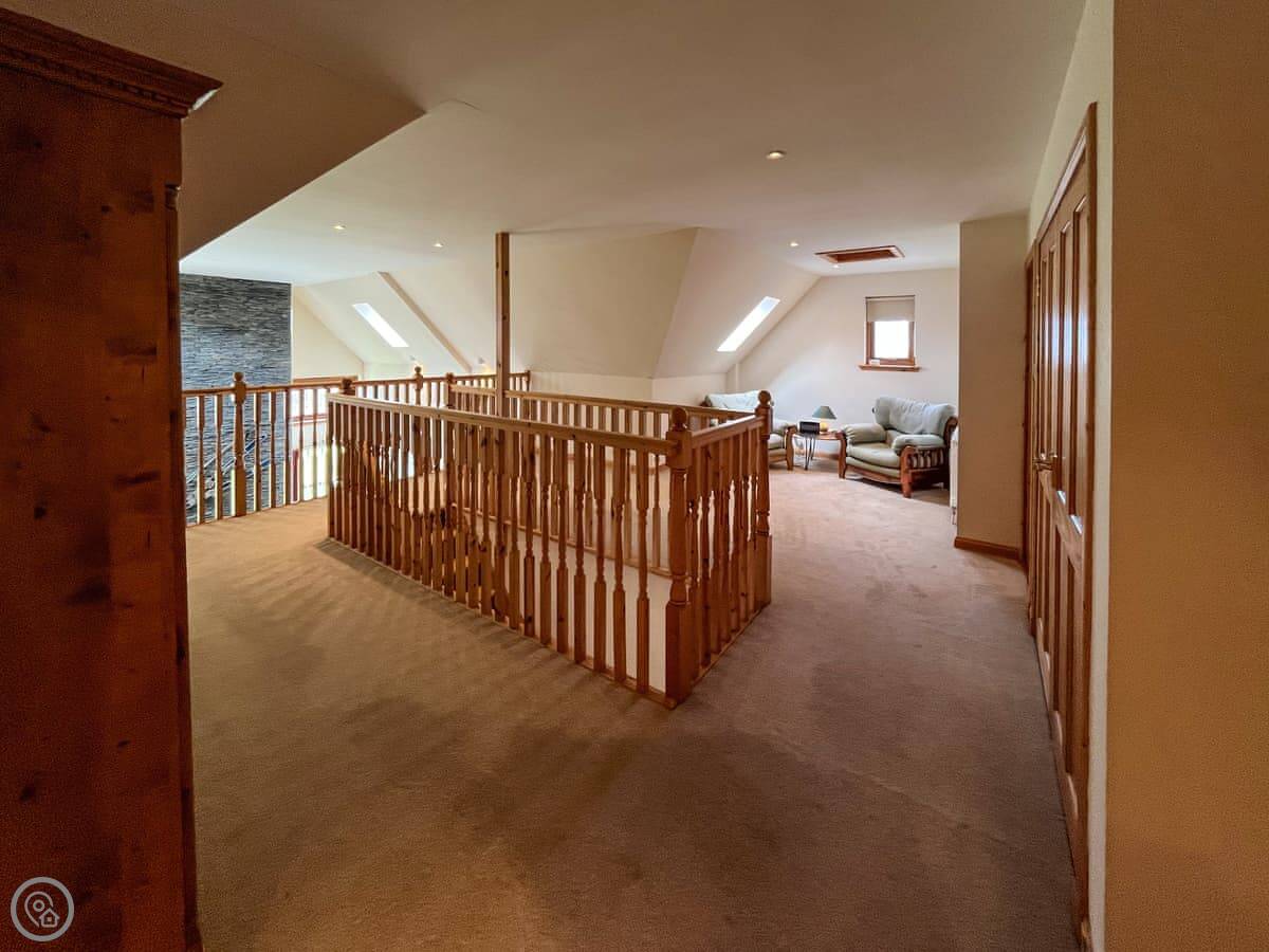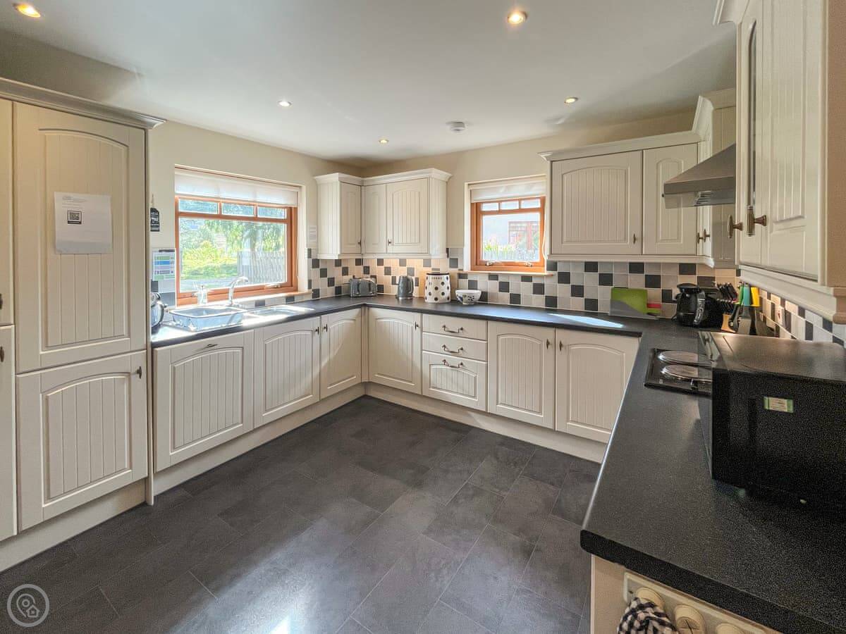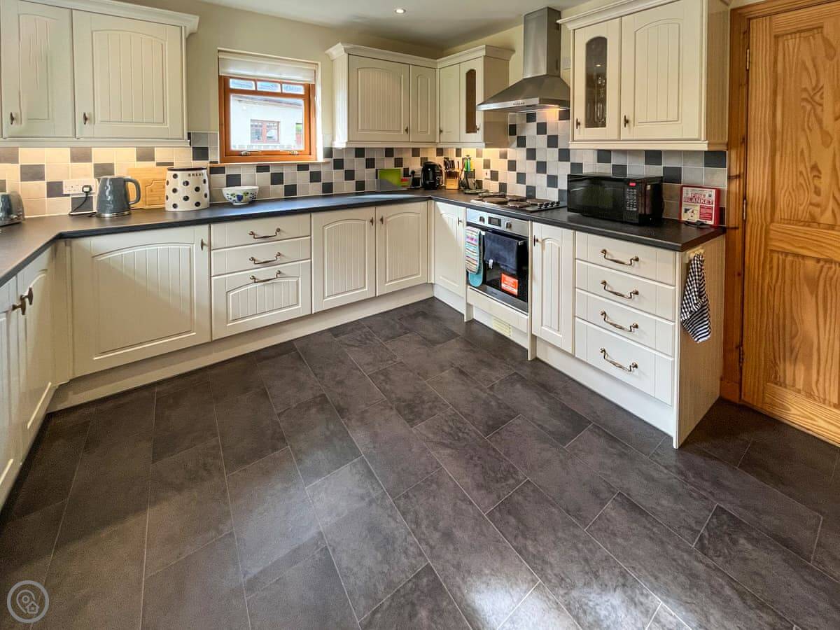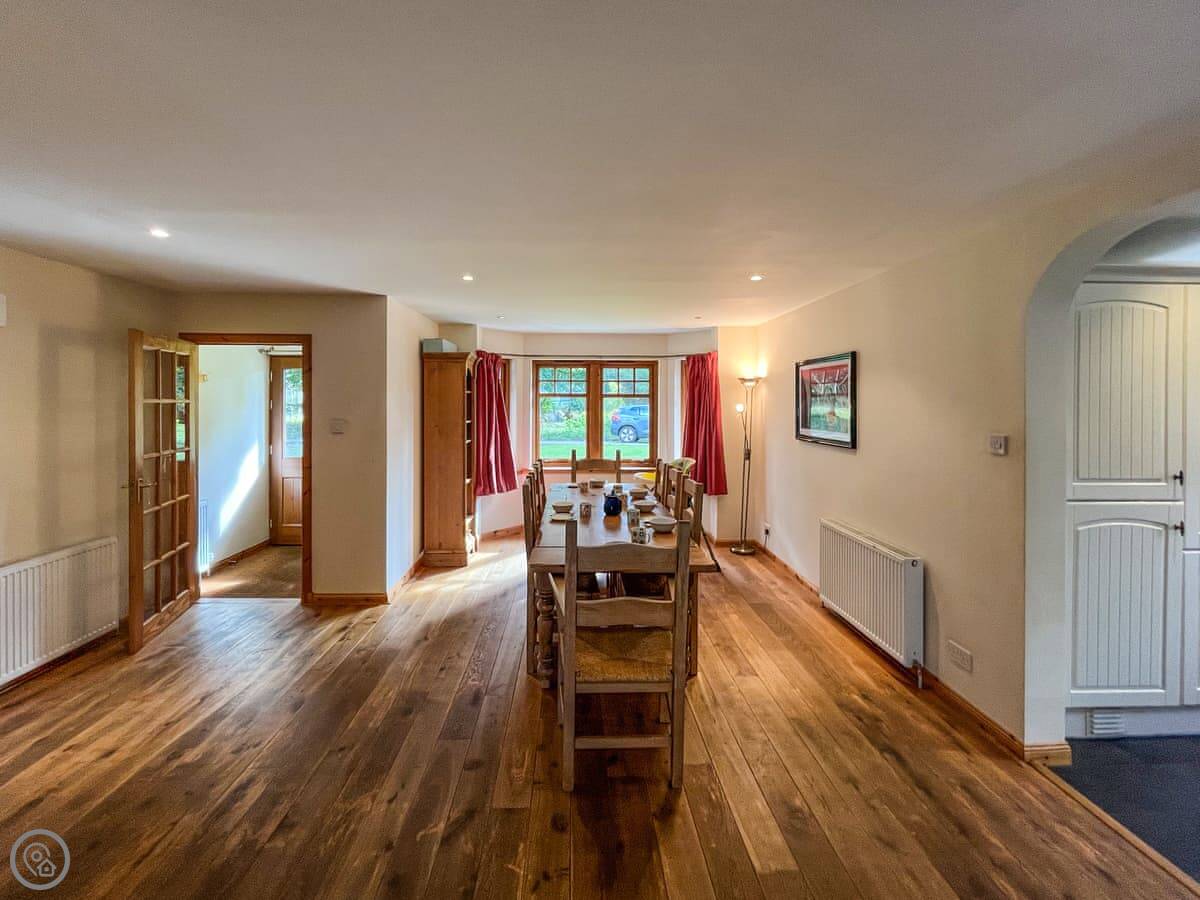 Inside, it's all open plan downstairs. Kitchen, dining, sitting room together. There's a wood burner. It's a modern build, so it's warm and the rooms are a decent size. It has a 4 Star rating.