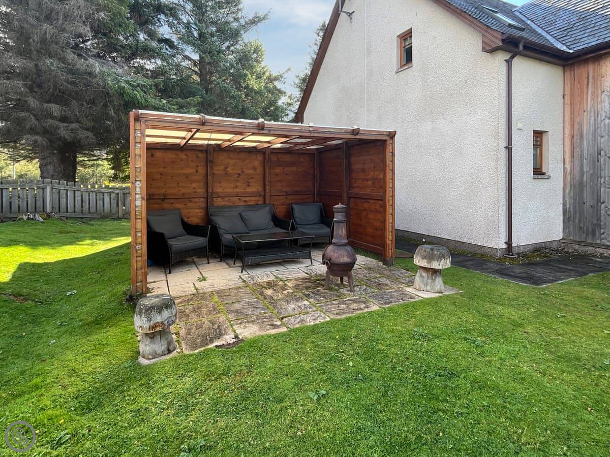 The garden is enclosed. There's a patio with a barbecue and one of those outdoor sofa things under a roof. They call it a sitooterie here. It's useful because it can rain.