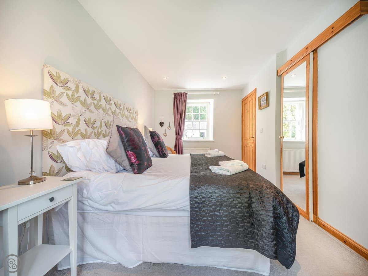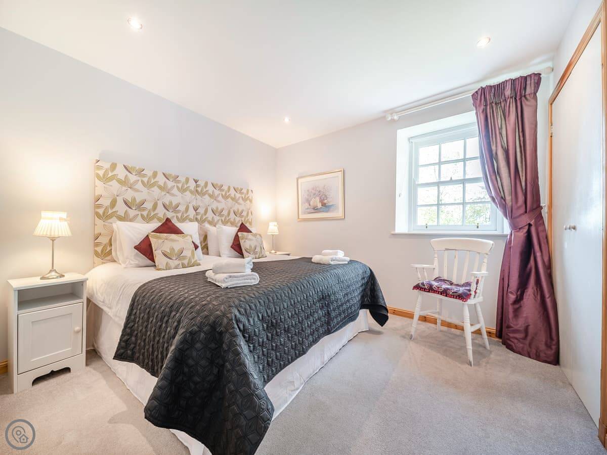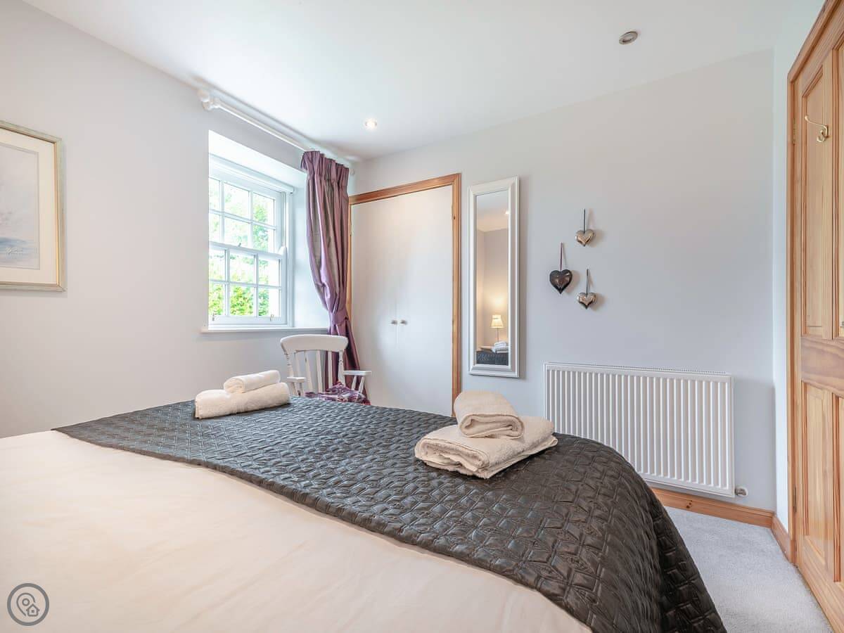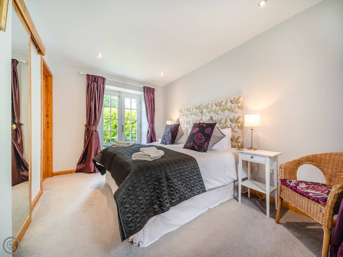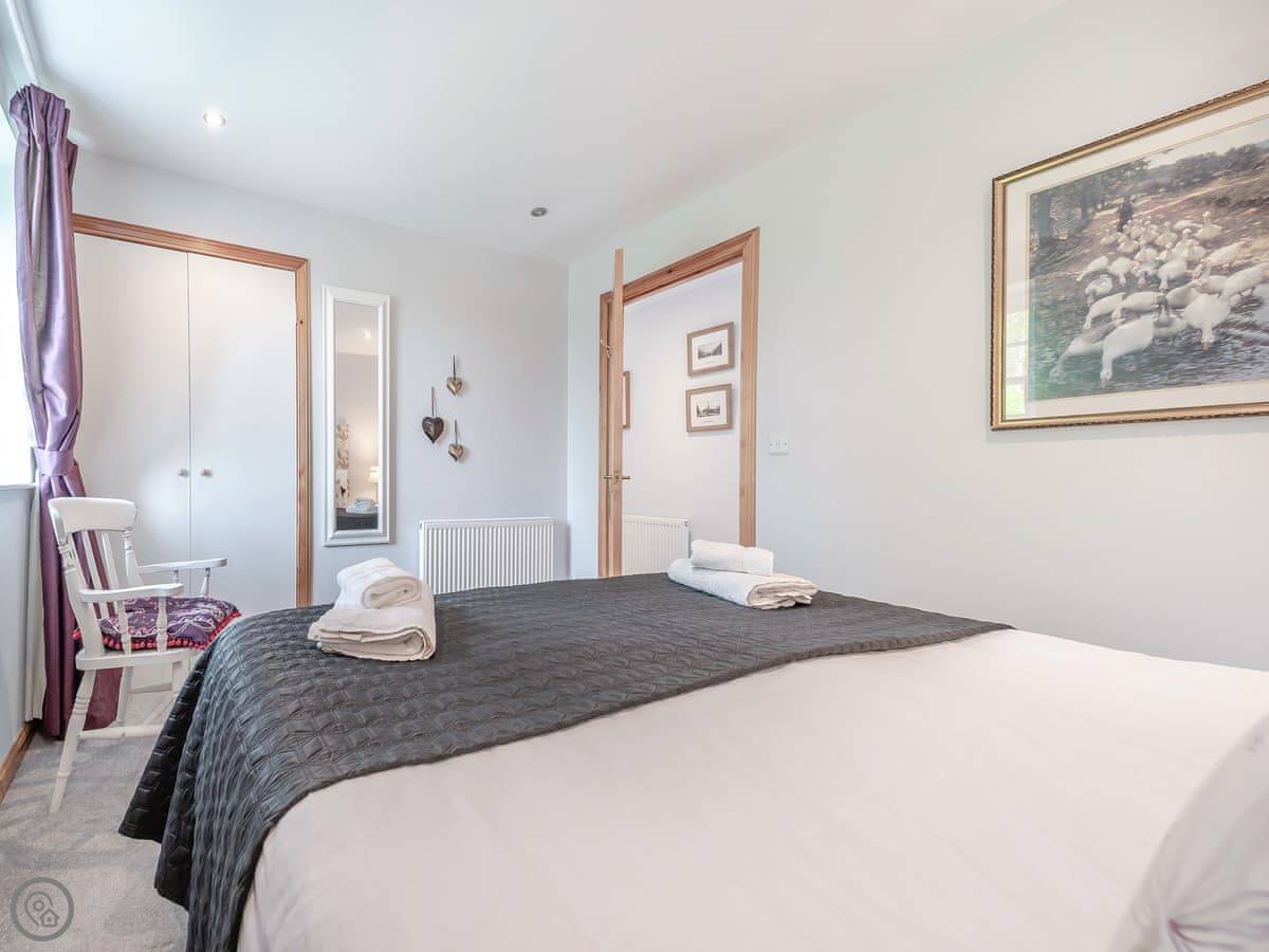 It sleeps four. Two bedrooms, both with super king beds, and two bathrooms. One is en-suite. It's a 4 Star property, so it's well done and comfortable. Everything is on the ground floor and the doorways are wide, so it's suitable for wheelchair users.