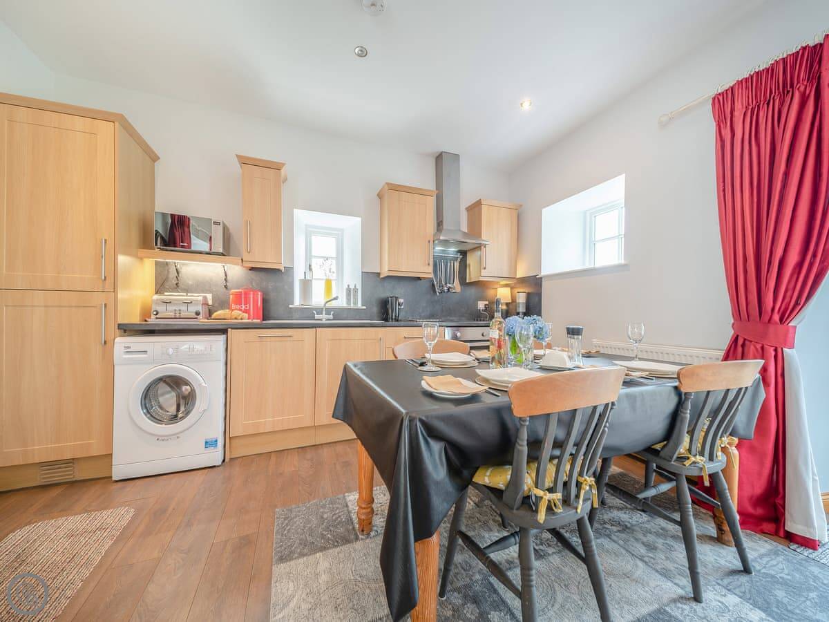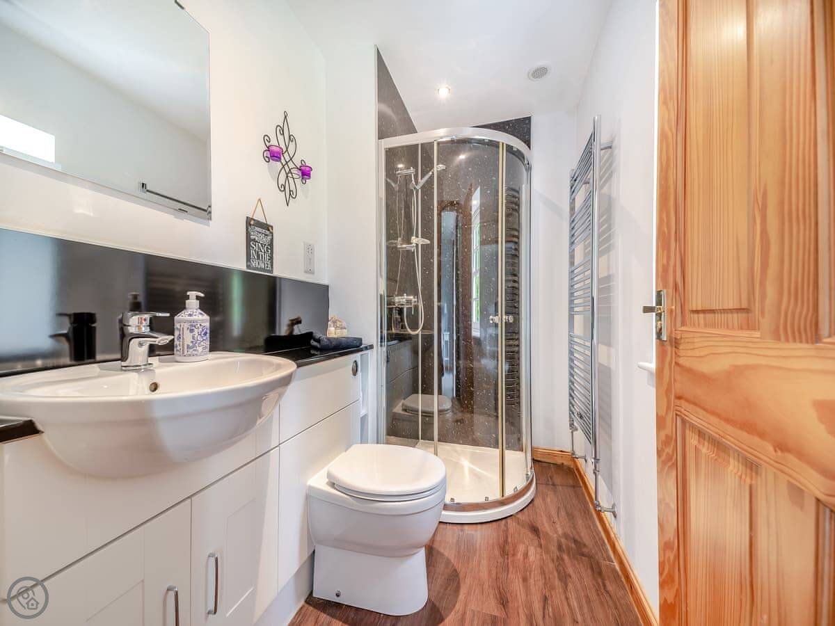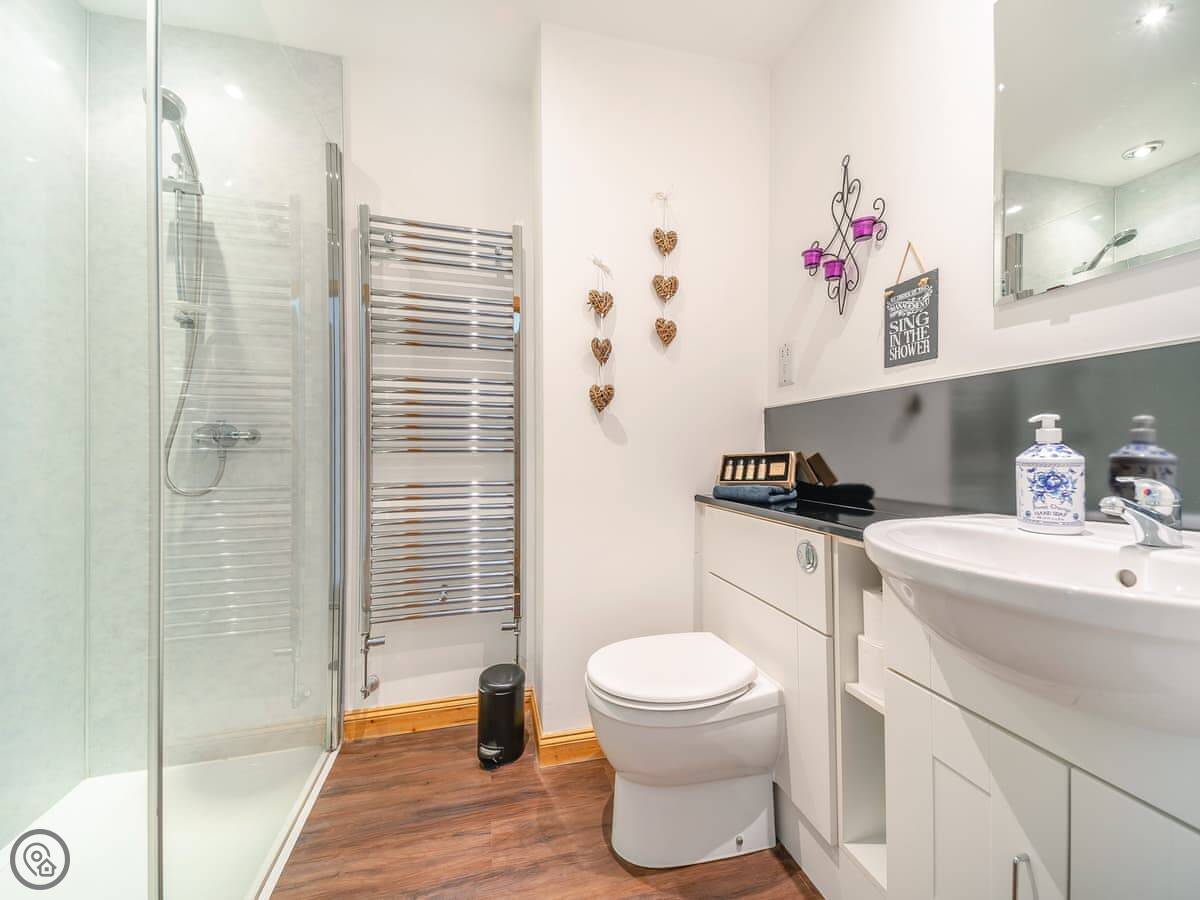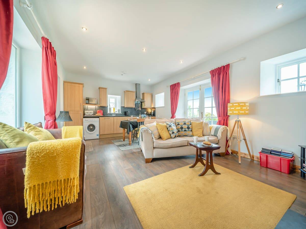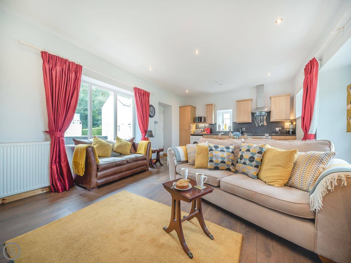 It sleeps four. Two bedrooms, both with super king beds, and two bathrooms. One is en-suite. It's a 4 Star property, so it's well done and comfortable. Everything is on the ground floor and the doorways are wide, so it's suitable for wheelchair users.