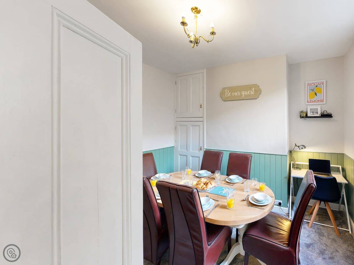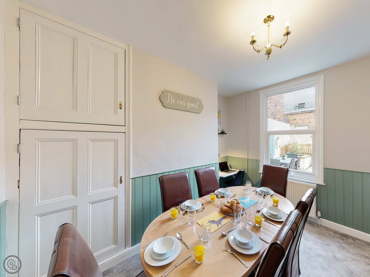 Inside, it's just a straightforward family house. There's a living room, a separate dining room, and a decent kitchen. All the bedding and towels are included. Washing machine, WiFi, TV. Nothing flash, but it's got what you need.