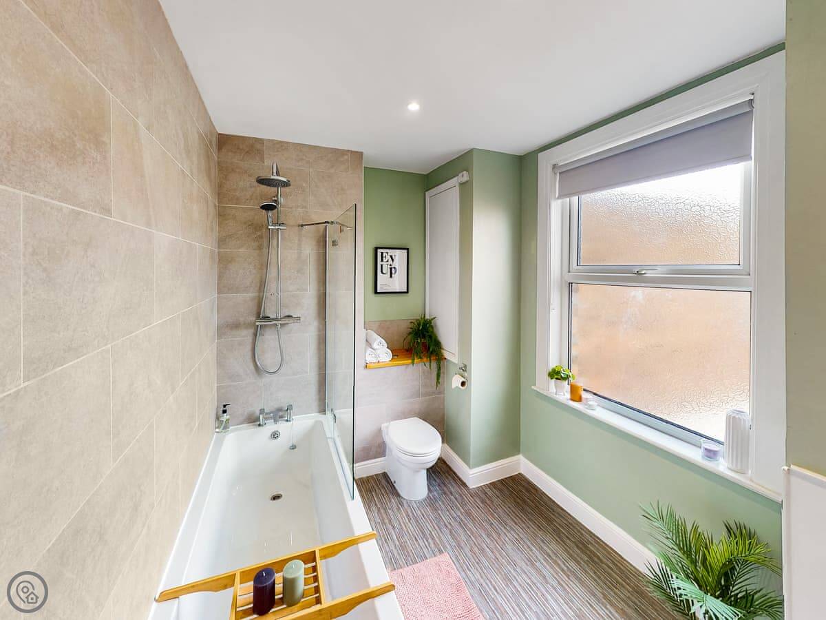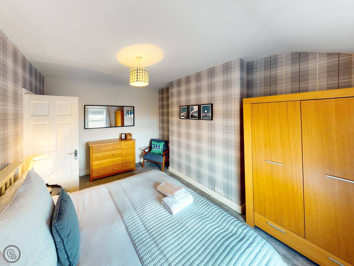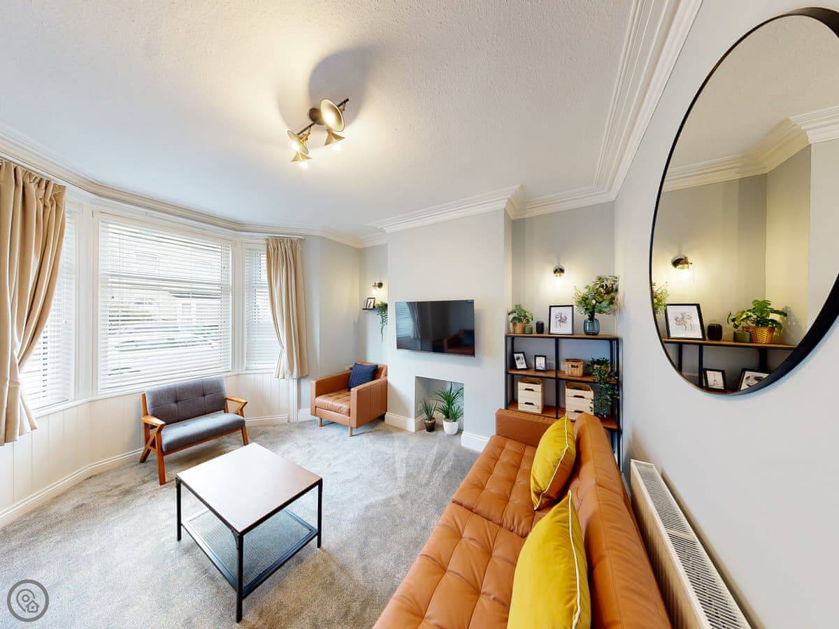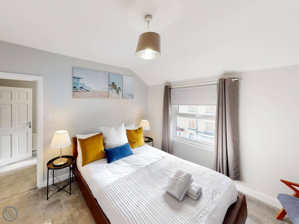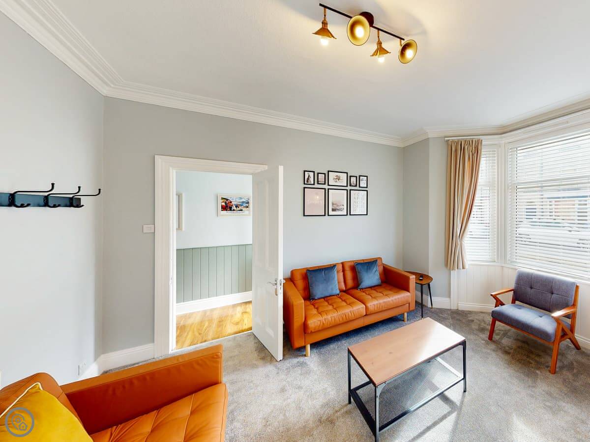 You're a short walk from the town centre shops and restaurants. The beach is under a mile away. The South Bay is the busy one with the donkeys and arcades. North Bay is quieter. You can walk the promenade between them, past the castle headland.