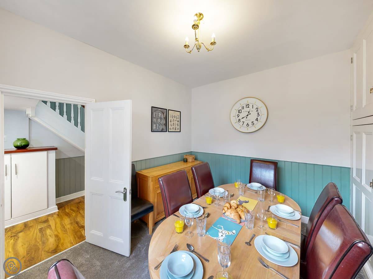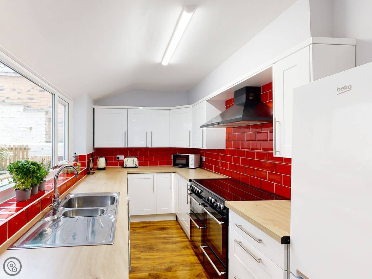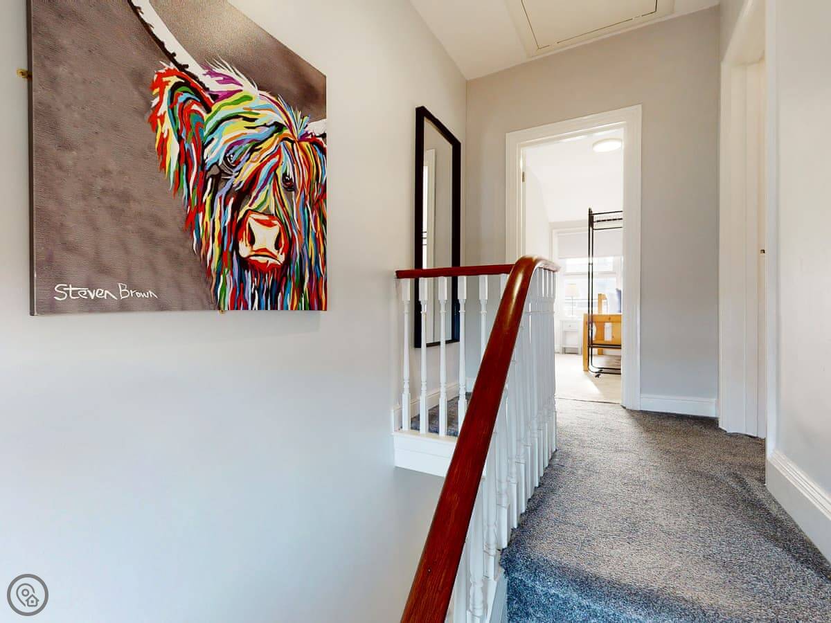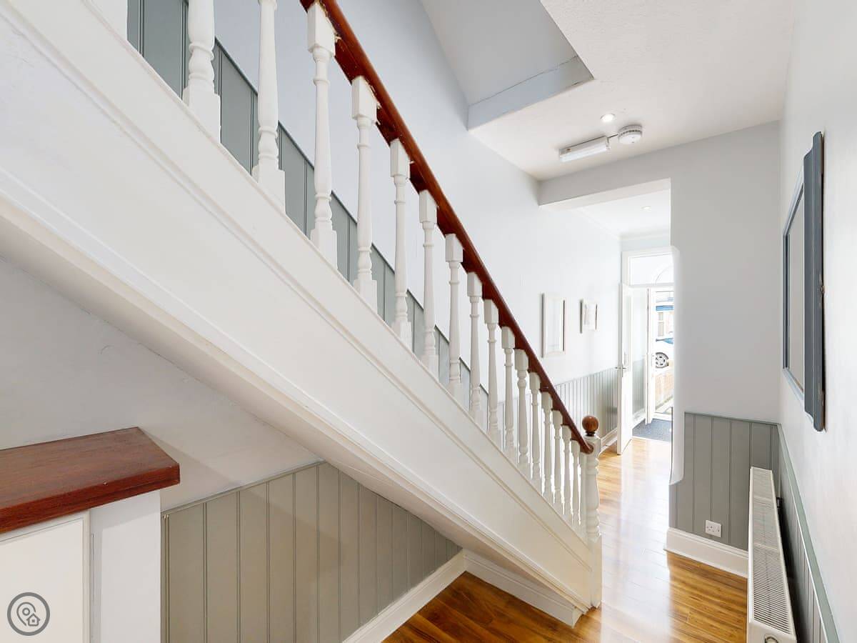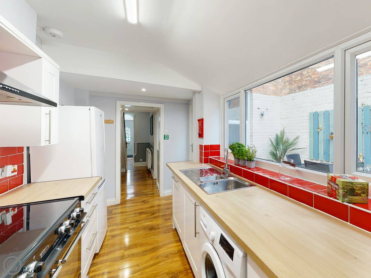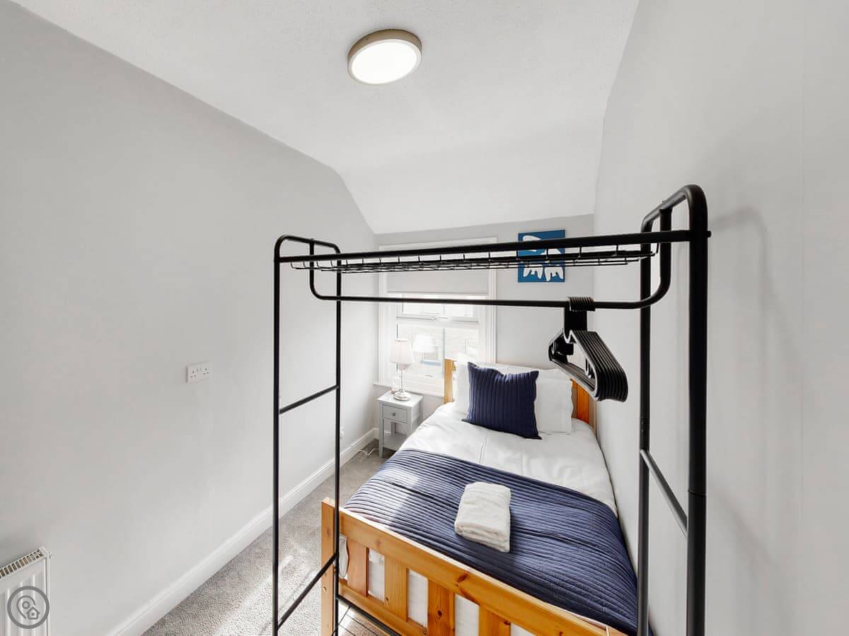 You're a short walk from the town centre shops and restaurants. The beach is under a mile away. The South Bay is the busy one with the donkeys and arcades. North Bay is quieter. You can walk the promenade between them, past the castle headland.