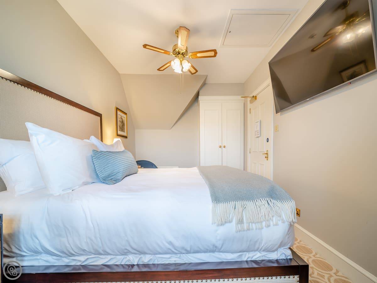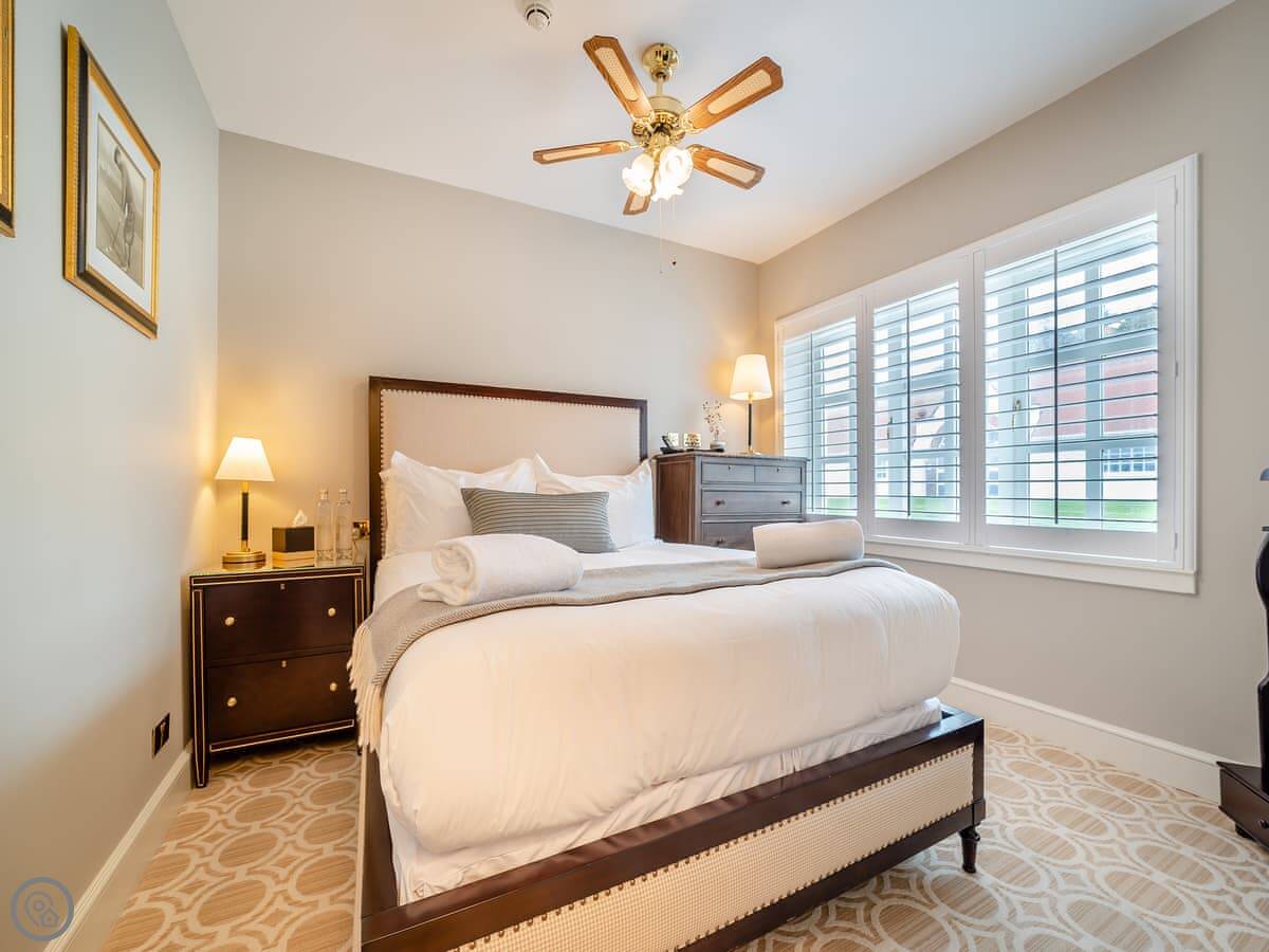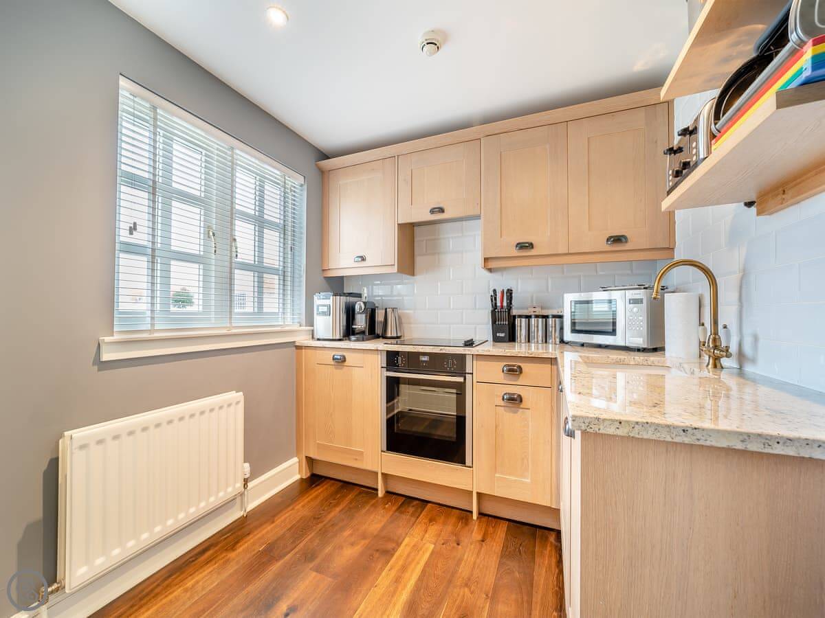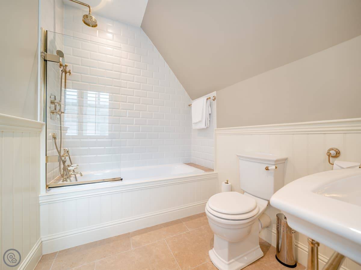 Inside, there's a living room with a large TV, a fully fitted kitchen with a dishwasher, and two bedrooms. All the bedding and towels are included. There's a cot and a highchair if you need them. You can bring up to two dogs.