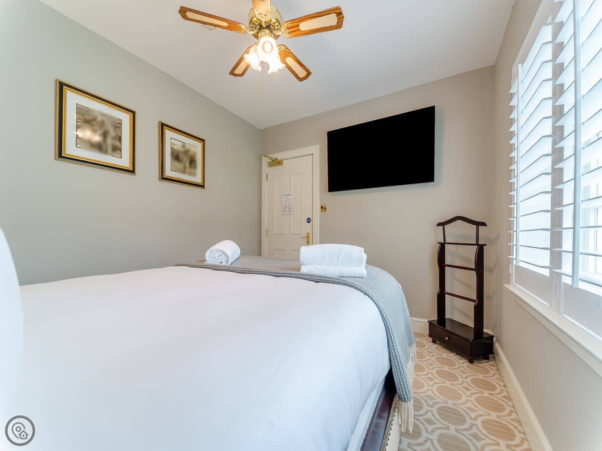 It’s a 5 Star place, so it’s well kept and comfortable. You get a 65-inch TV, WiFi, and parking on site. Bedding and towels are included. There's a cot if you need one.