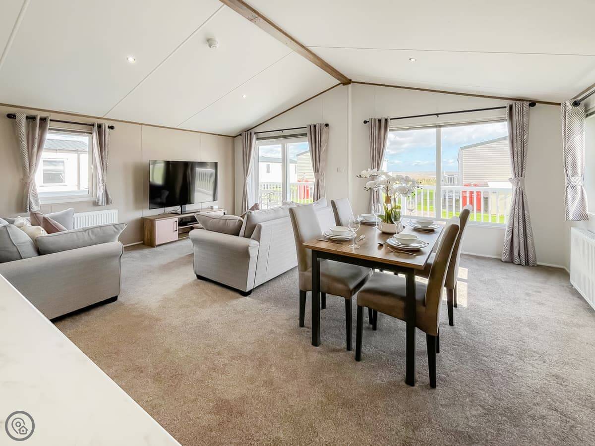 This is Bud's Bay. It's a lodge on the Southerness Holiday Park, near the Solway coast. The park is family-focused, so there's stuff on site like an indoor pool, a kids' play area, and a mini golf course.
