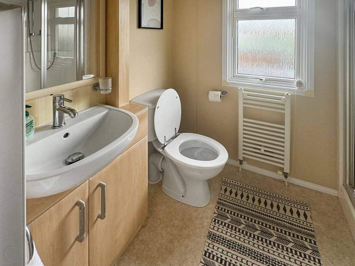 It sleeps five people. There are three bedrooms and one bathroom. One bedroom has its own shower. The shower in the family bathroom is over the bath. It's got a 4 Star rating, so it's comfortable and well looked after.