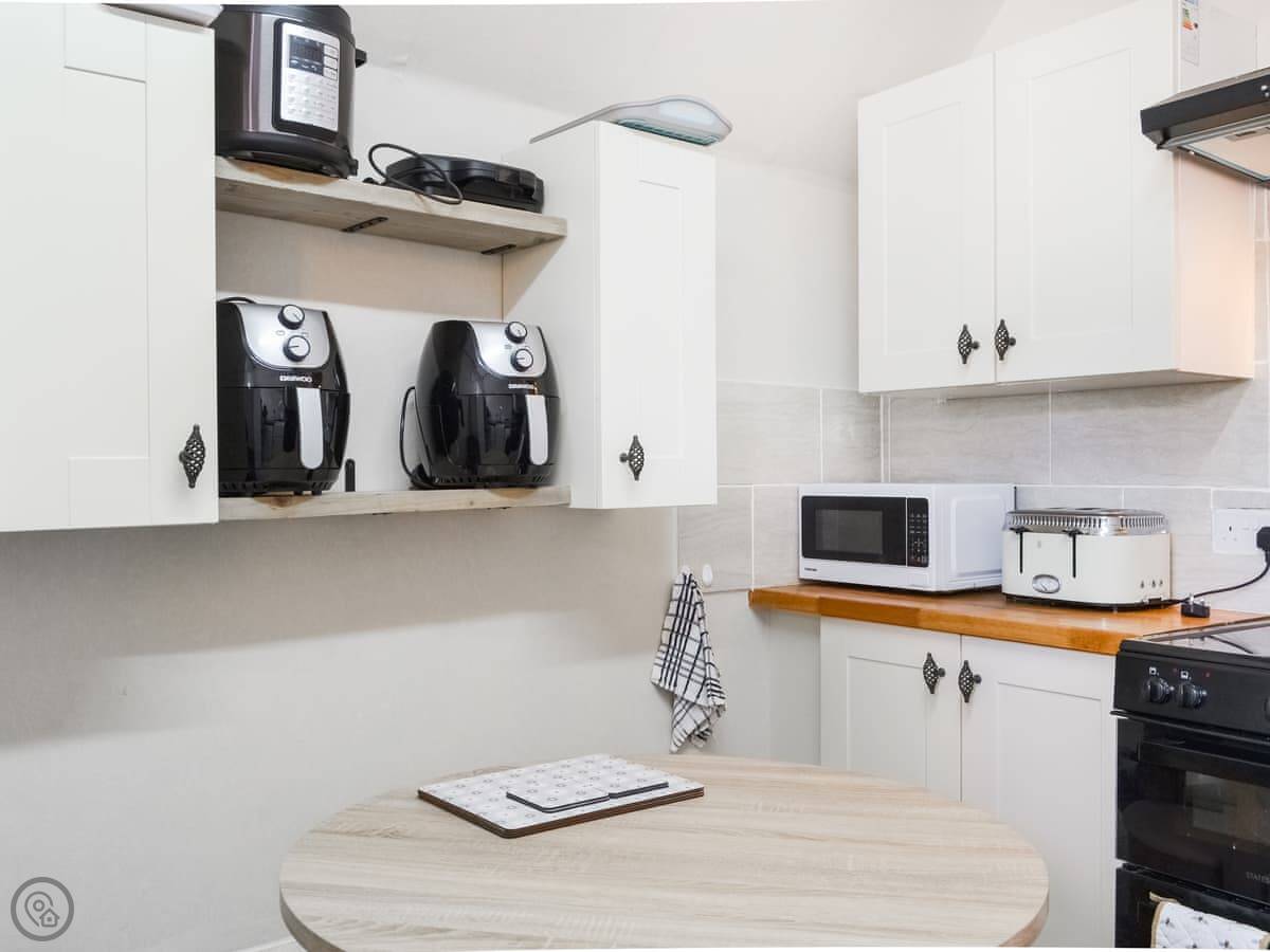 It's above our fish and chip shop. You'll get a discount voucher when you arrive. The shop entrance is separate, so your front door is just for you.