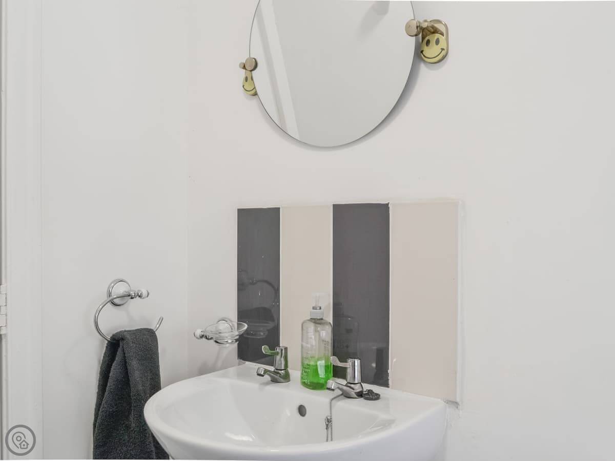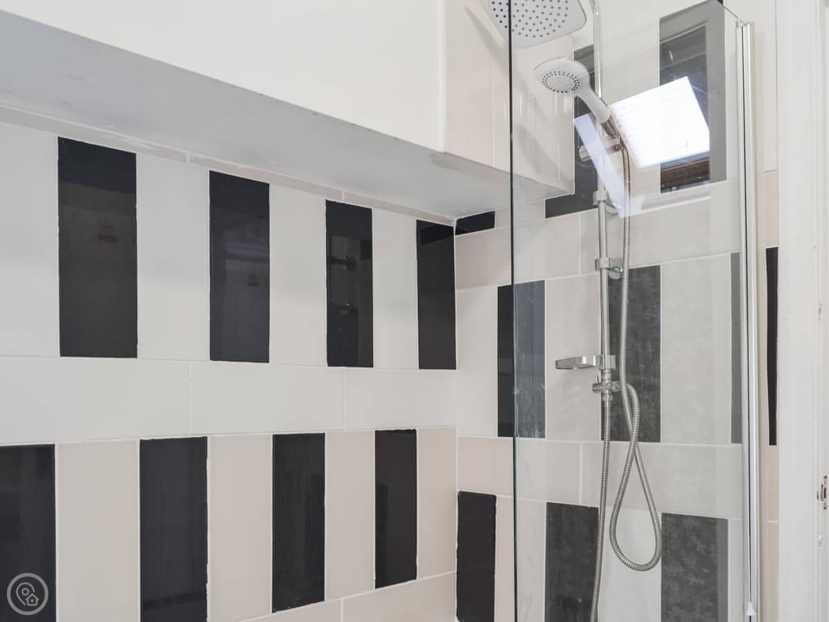 It sleeps five people in two bedrooms. There's one bathroom with a toilet, and a separate downstairs WC. The stairs are very steep, just so you know. They're part of the old building. The floors slope a bit in places too.