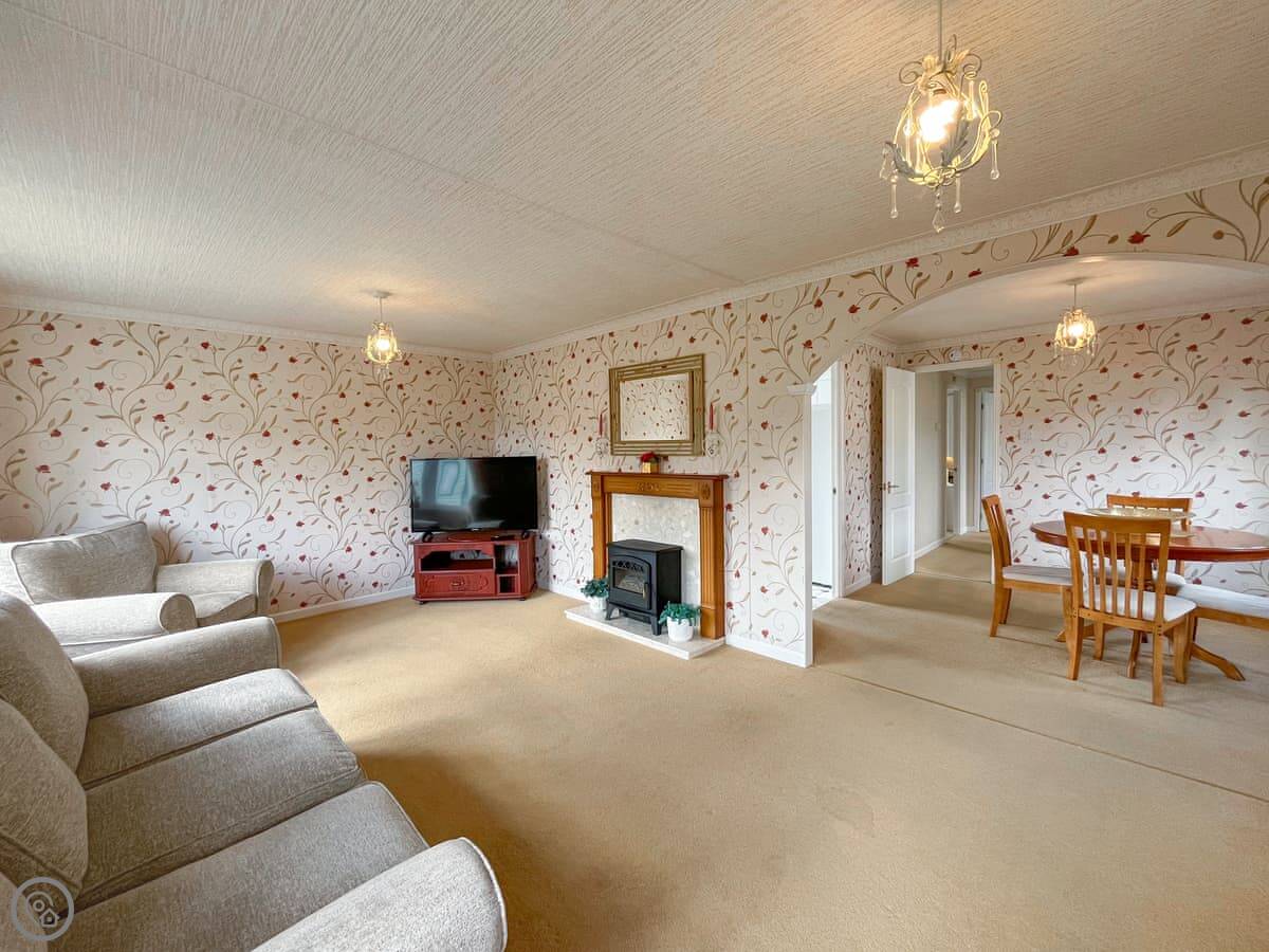 Tredegar is a lodge on Creebridge park, just outside Newton Stewart. It's detached, so no neighbours through the walls. You get a patio with a table and chairs. It's quiet here.
