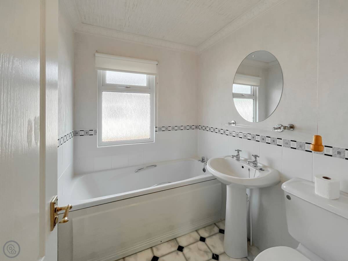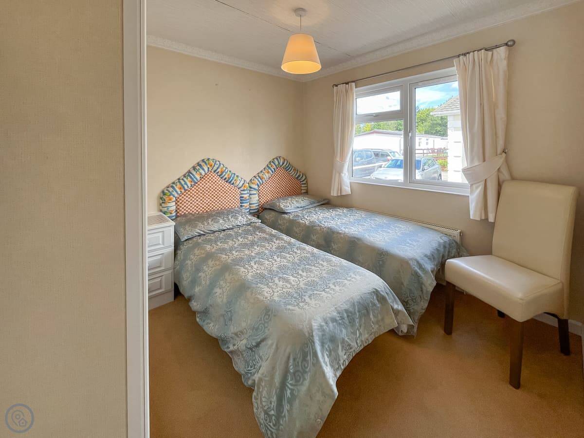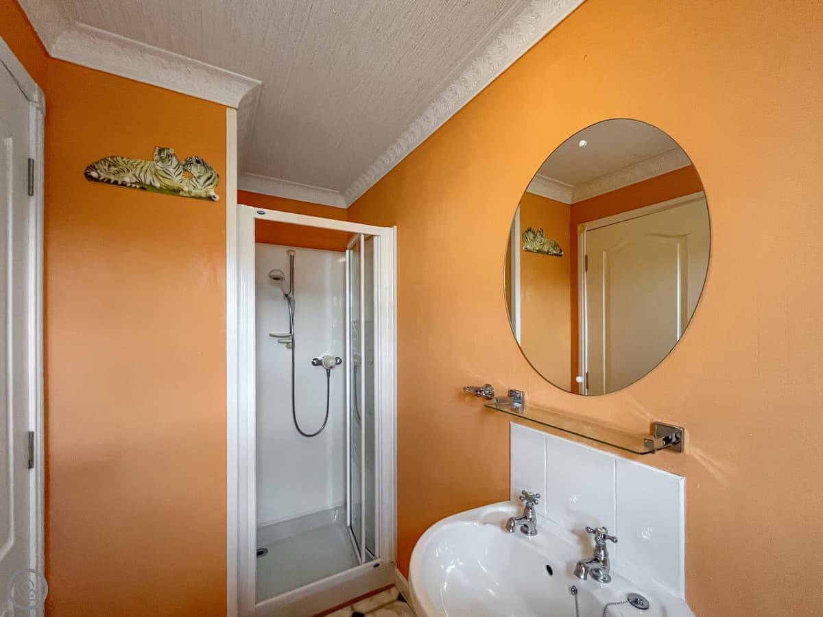 It sleeps four. There's one bedroom with a double bed and an en-suite shower. The other two beds are in an open plan area upstairs. There's also a family bathroom with a bath. It's a 3 Star place, so it's comfortable and clean, not luxurious.