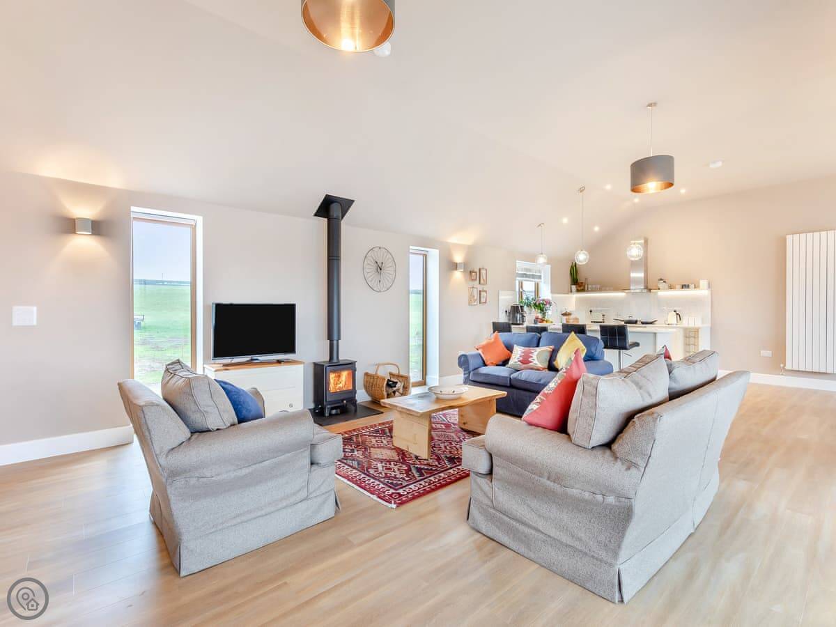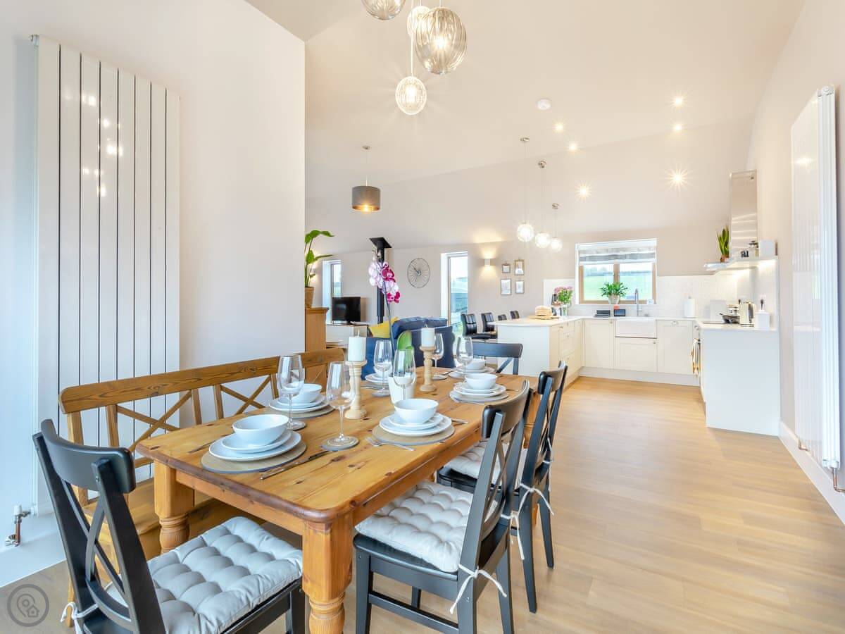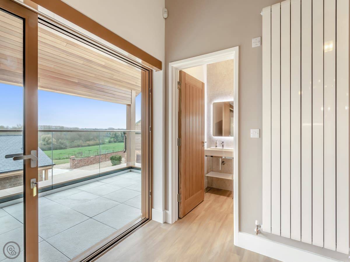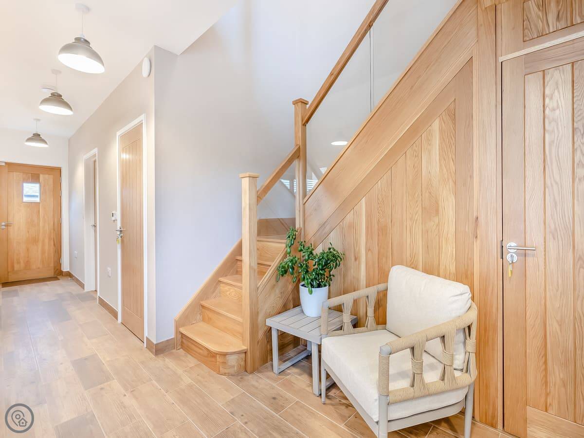 Hollyhocks is a barn conversion in Woodford. It's new, that's why it looks so clean. It's on a working farm, surrounded by fields. You get 500 acres to wander around on your own.