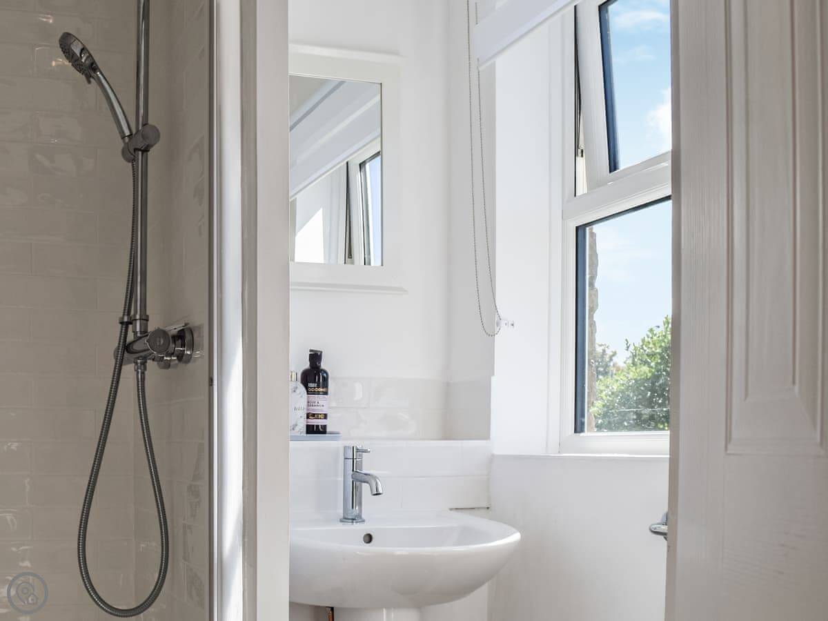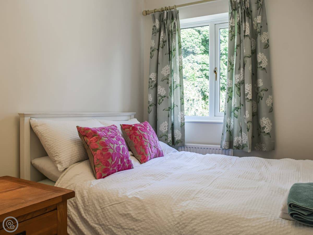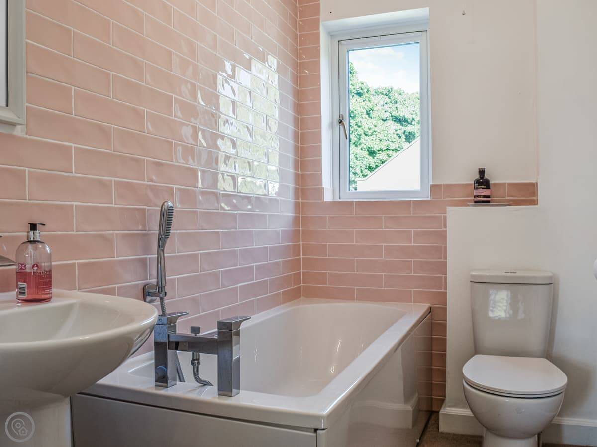 It sleeps four in two bedrooms. Both are doubles. There are two bathrooms, which is handy. One is an ensuite shower room to the main bedroom, the other is a proper bathroom with a tub. The stairs are standard for a cottage.