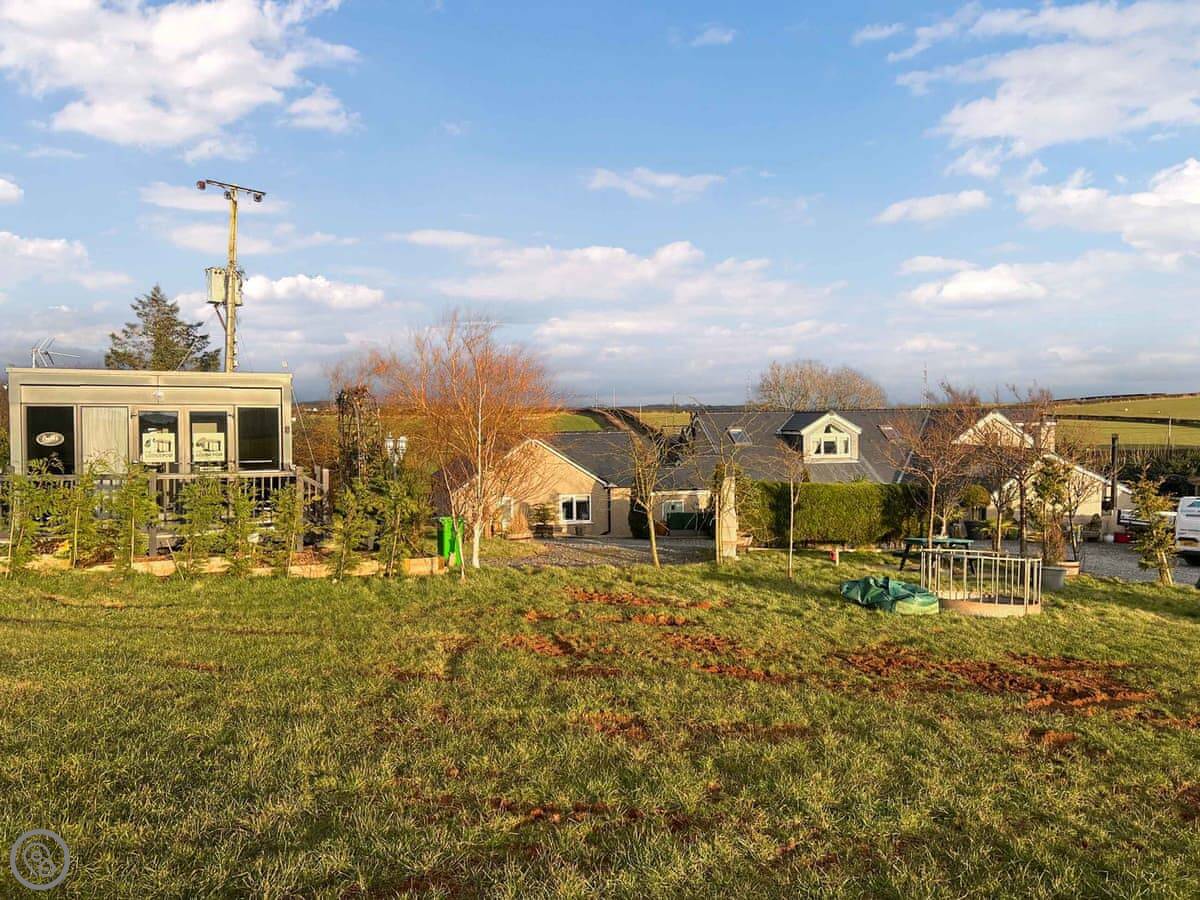 The Lodge Pod is in Newton, a small village in South Cumbria. It's for two people. There are a few others on the same site, but they're spaced out.