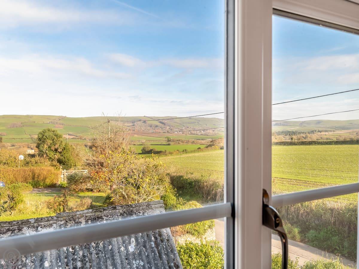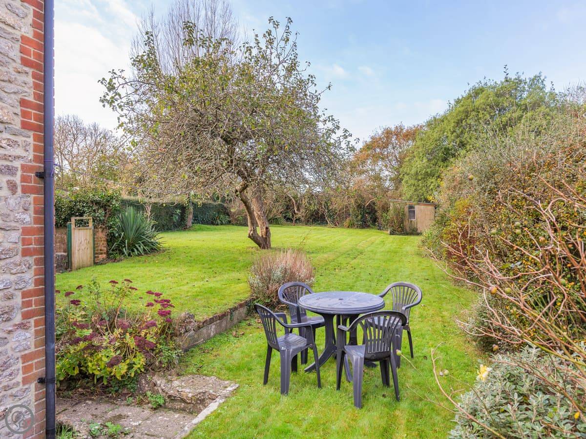 Prosperous Villa is in Puncknowle, a small village inland from the coast. It's a detached house, so nobody's attached to you. The garden wraps around the place, gets the sun, and looks out over a valley.