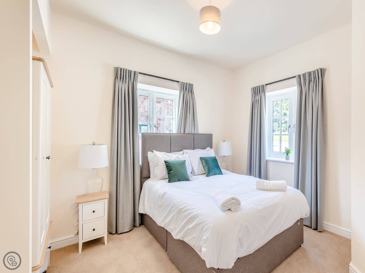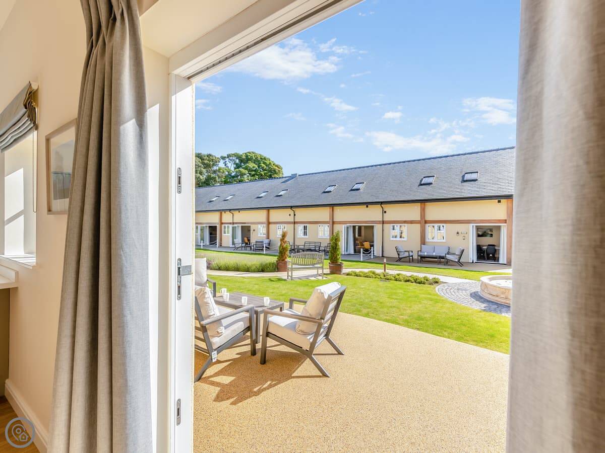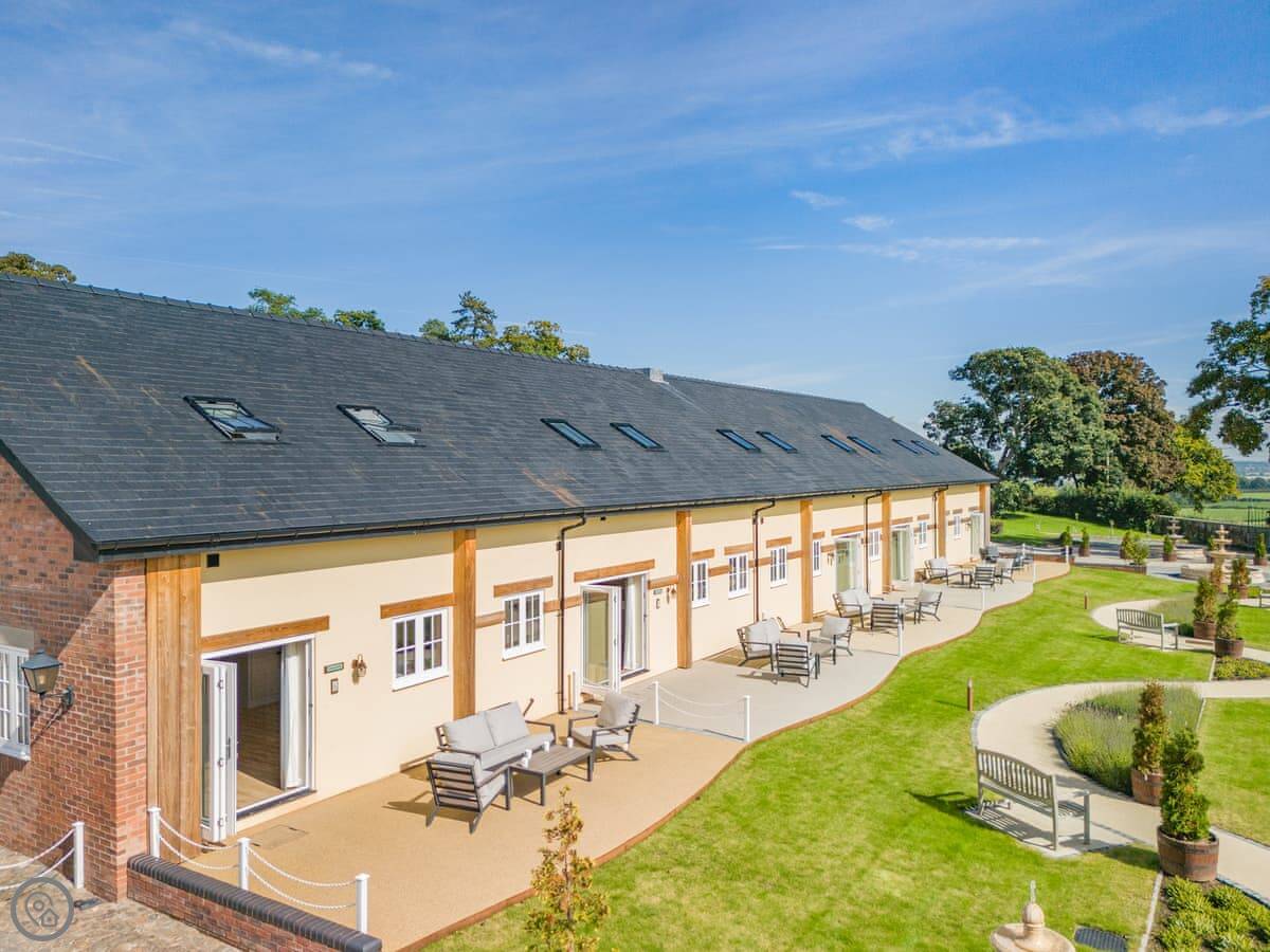 No 8 - Goodwood is one of ten converted stables on the Tedsmore Hall estate, near West Felton in Shropshire. They're set around a big courtyard with fountains. It's a peaceful spot with views over fields.