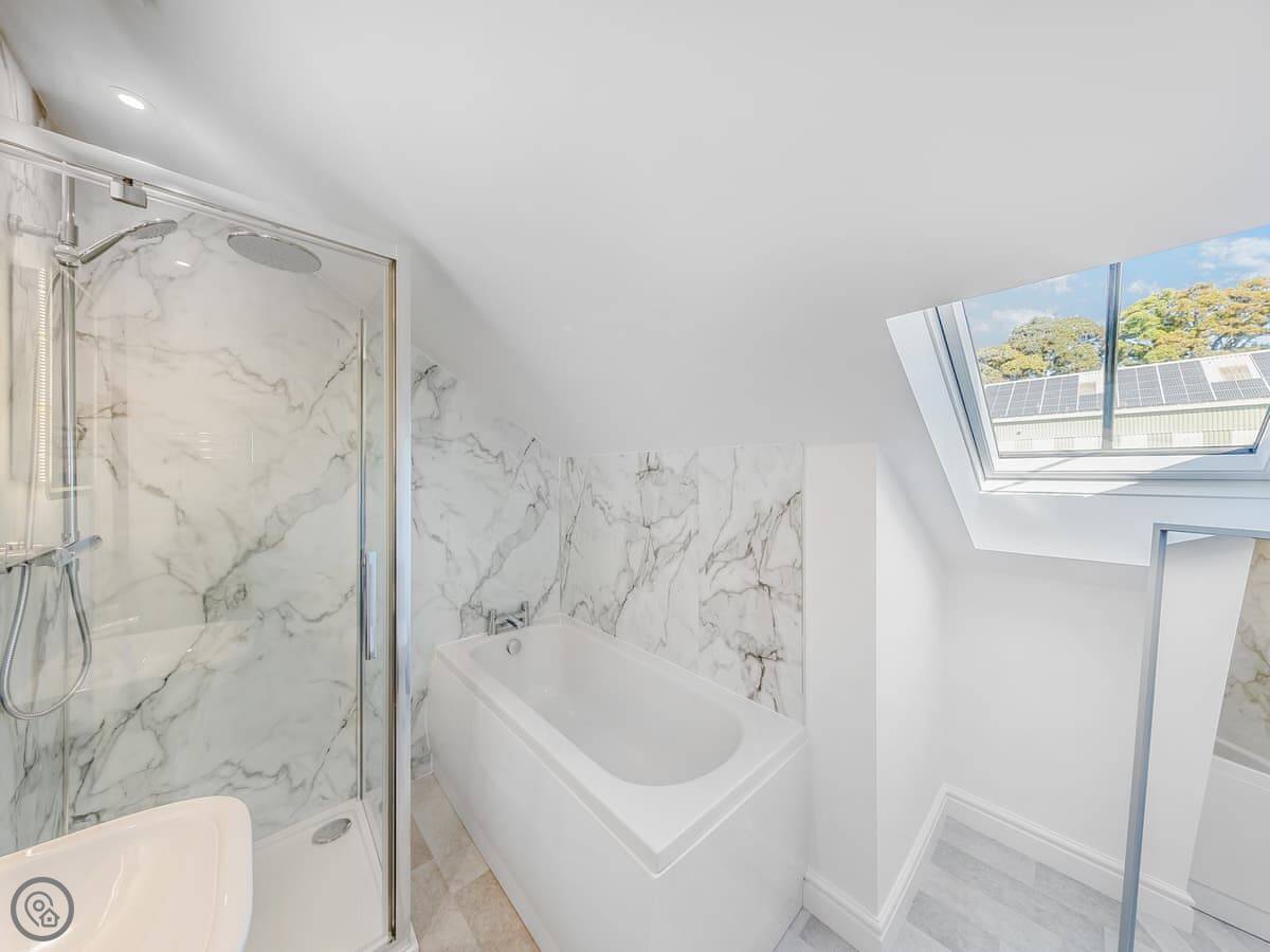 It sleeps eight in four bedrooms. There are three bathrooms. It's got a 5 Star rating, so it's a high standard finish. Everything's new and clean.