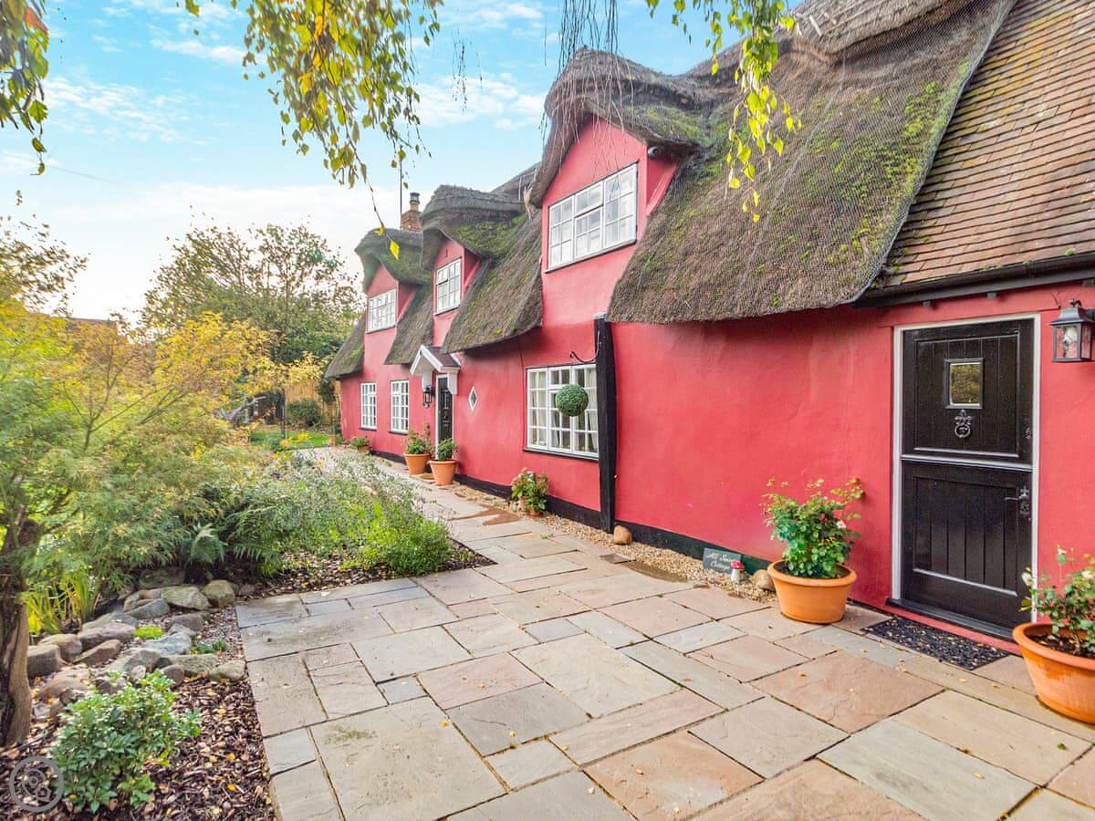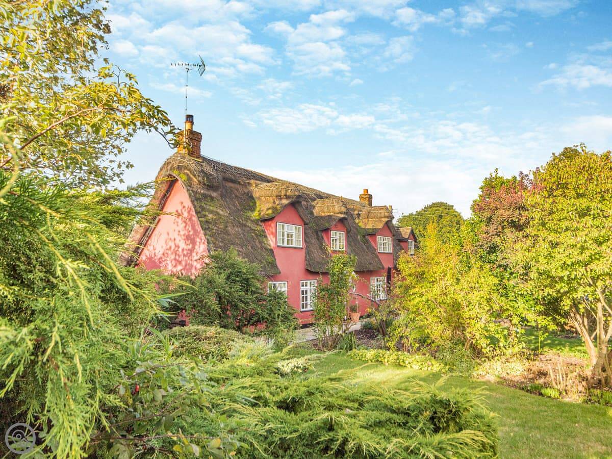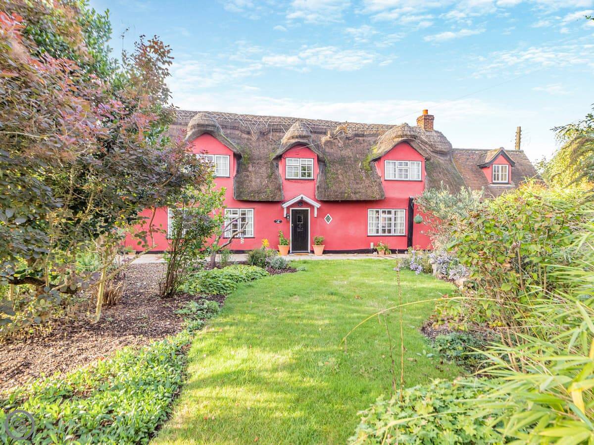All Saints Cottage is a thatched house in Ashdon, a small village in Essex. It's a detached house, so you get the garden to yourselves. The garden is mostly lawn with some mature trees and a patio.