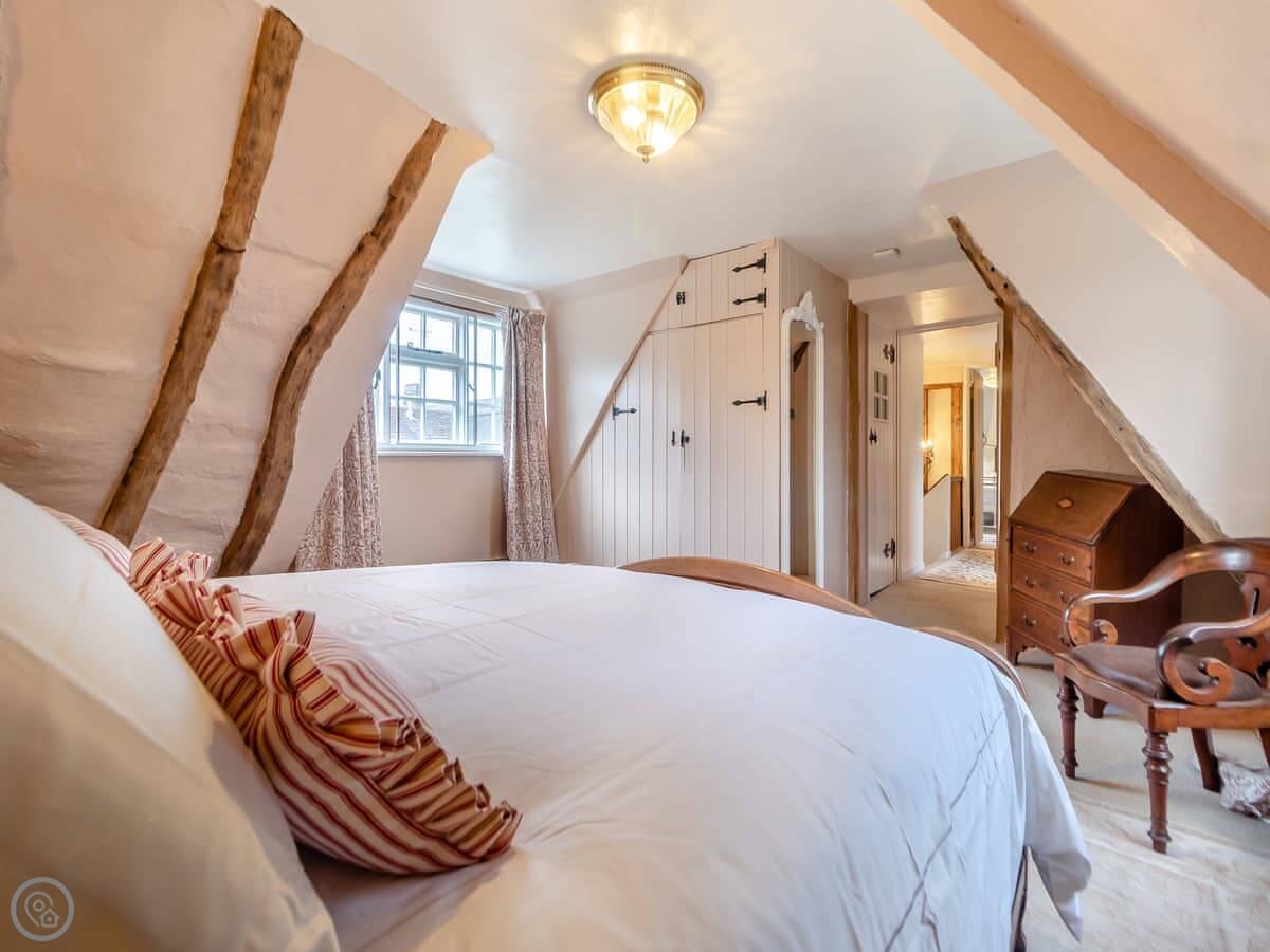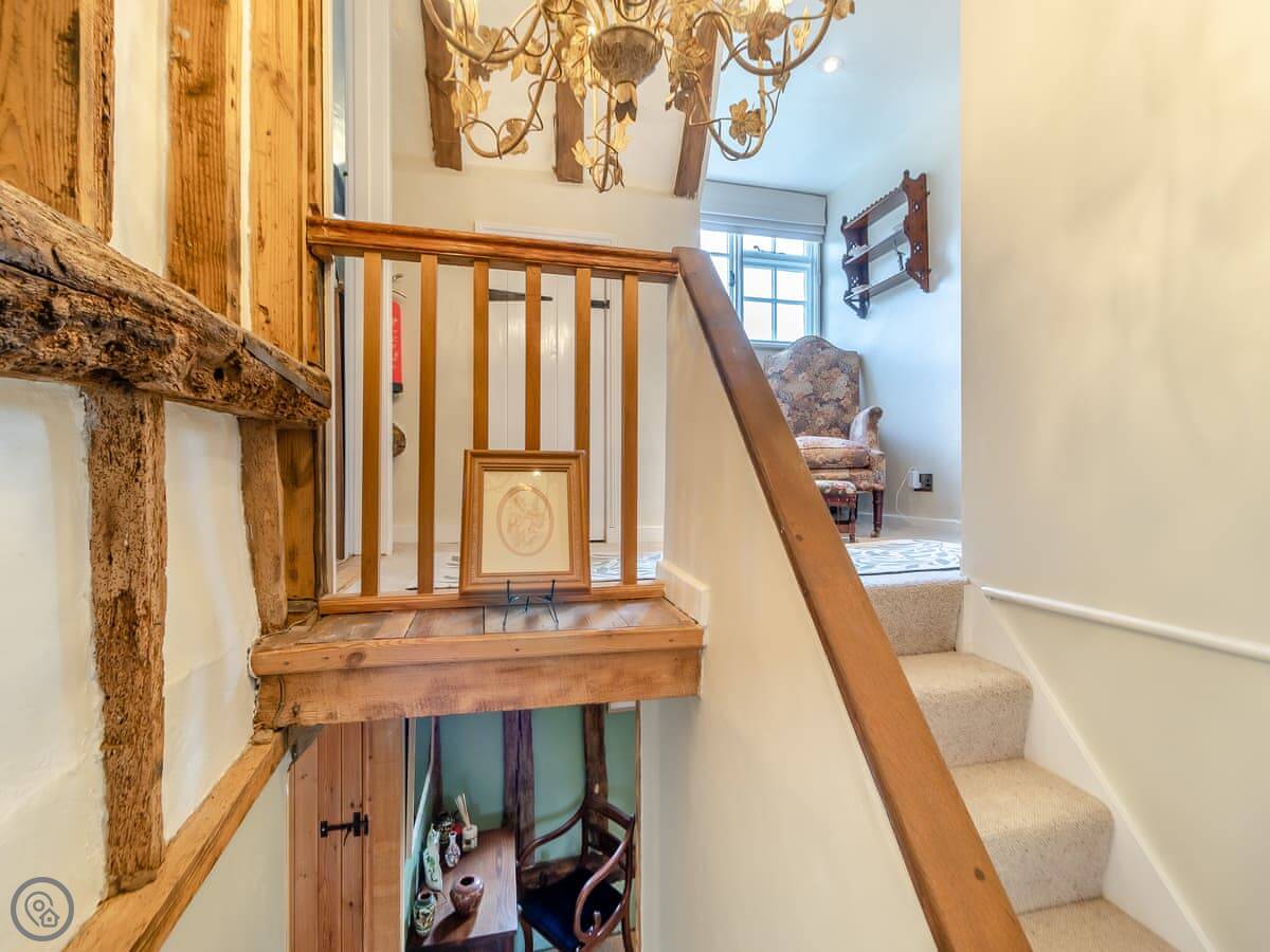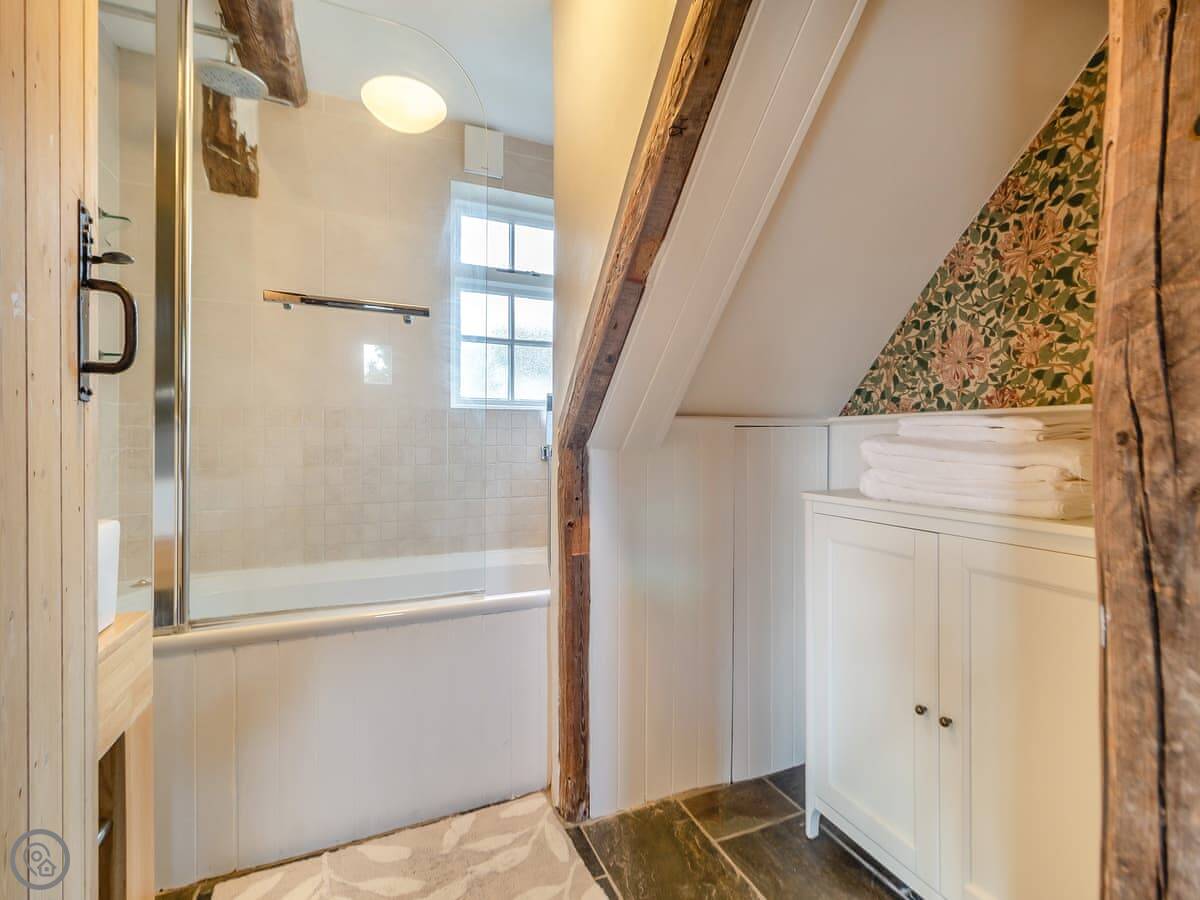 The house sleeps five. That’s three bedrooms and two bathrooms. One bathroom is an en-suite to the main bedroom. It's a 4 Star property, so it’s well-equipped and comfortable. The stairs are fairly steep, which is normal for an older house. It's got a wood-burning stove. There's a dishwasher and an Aga, plus a standard oven and hob if you’re not used to cooking on an Aga.