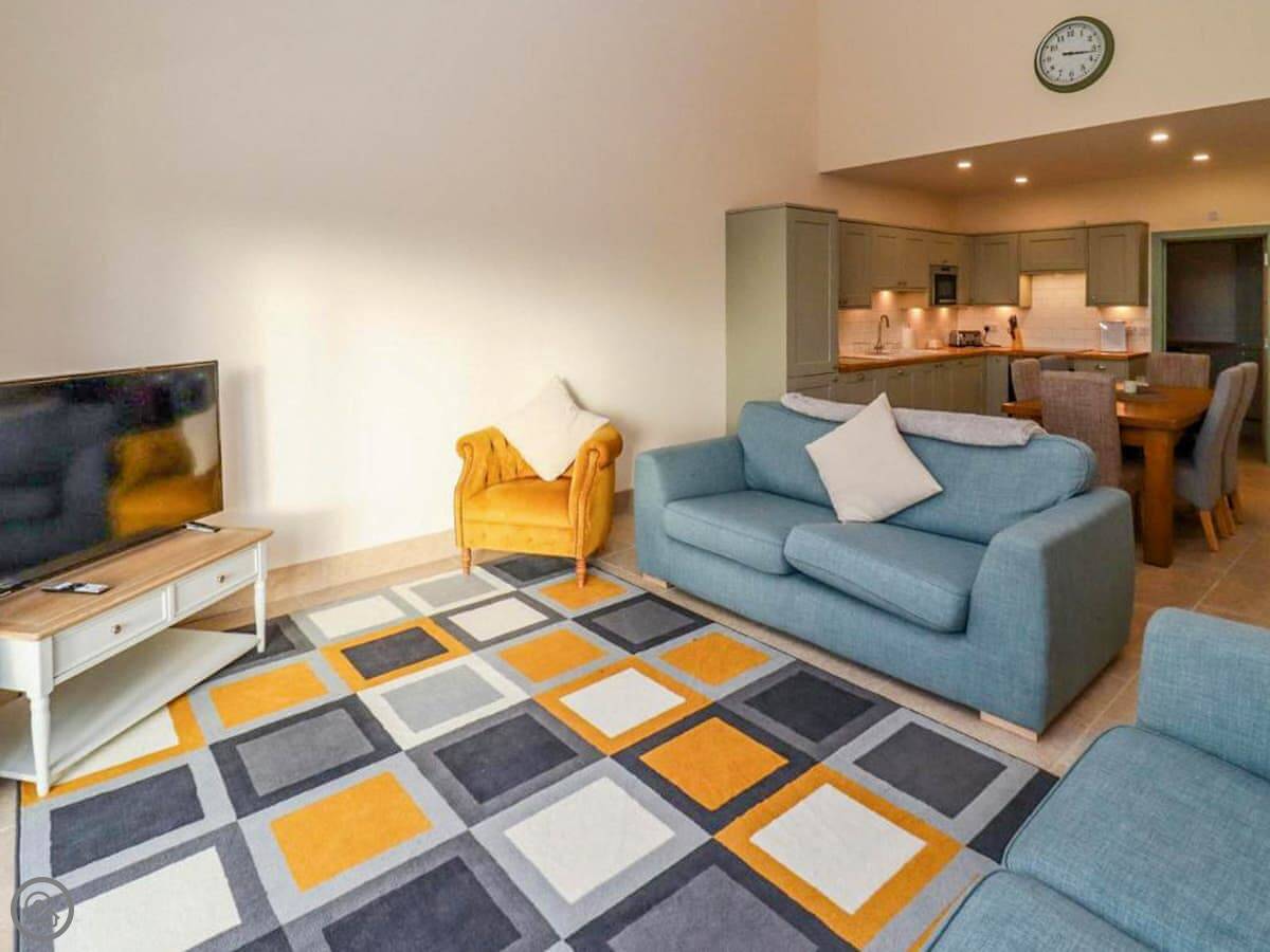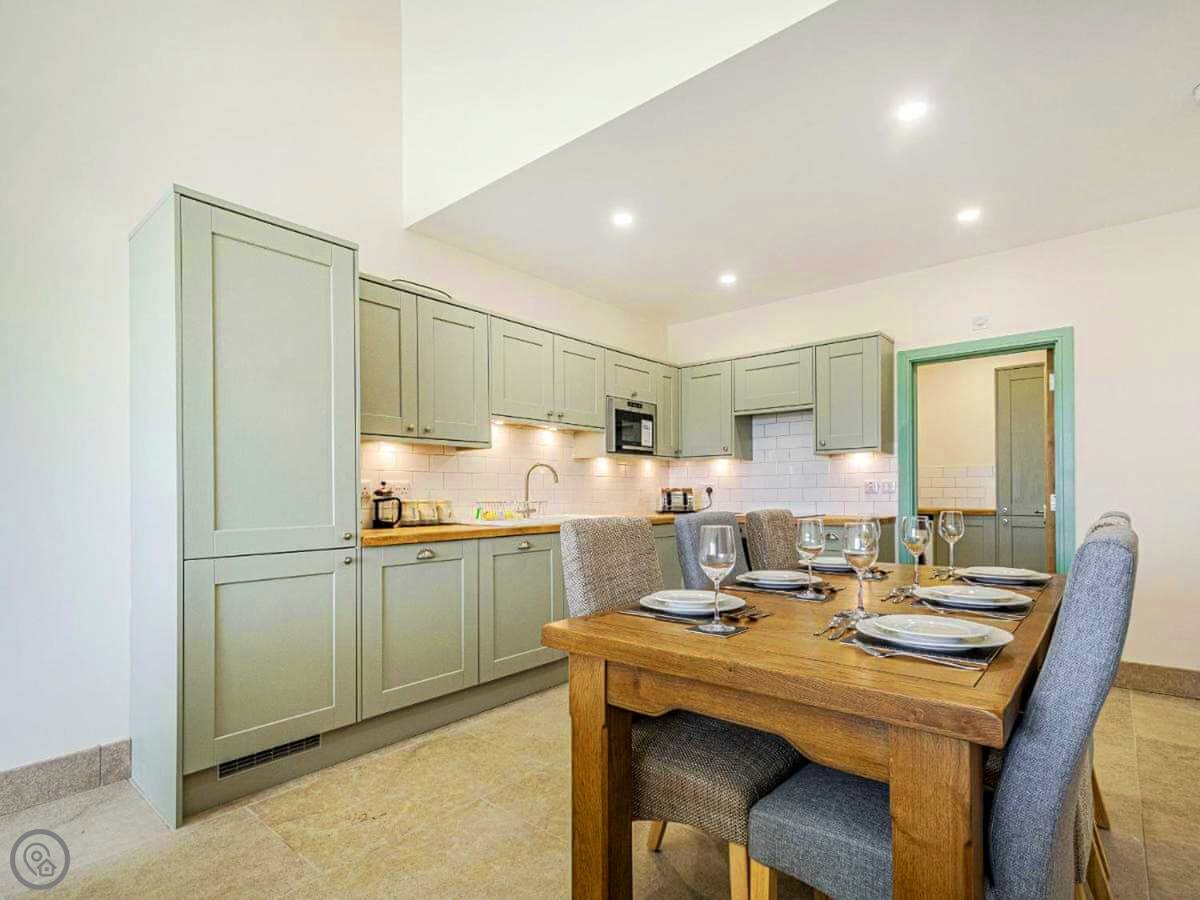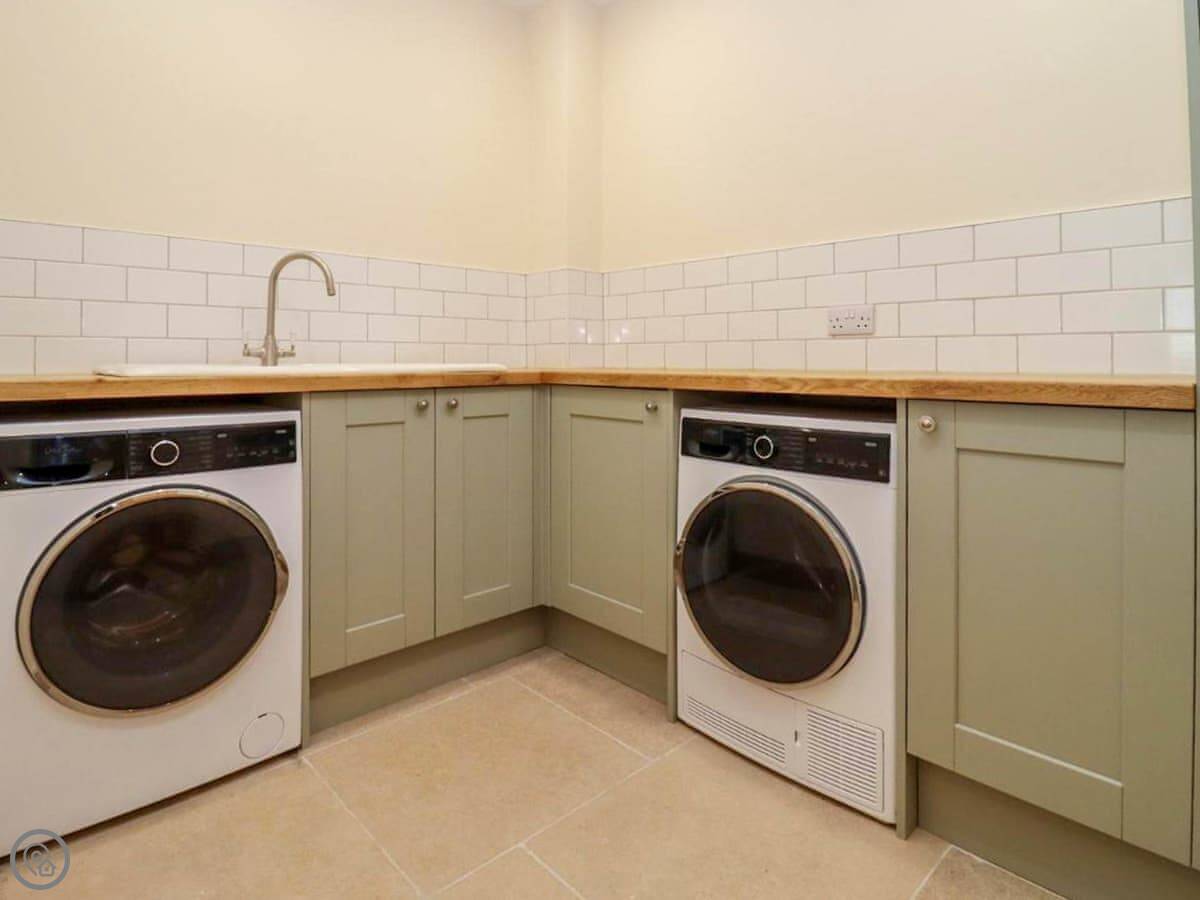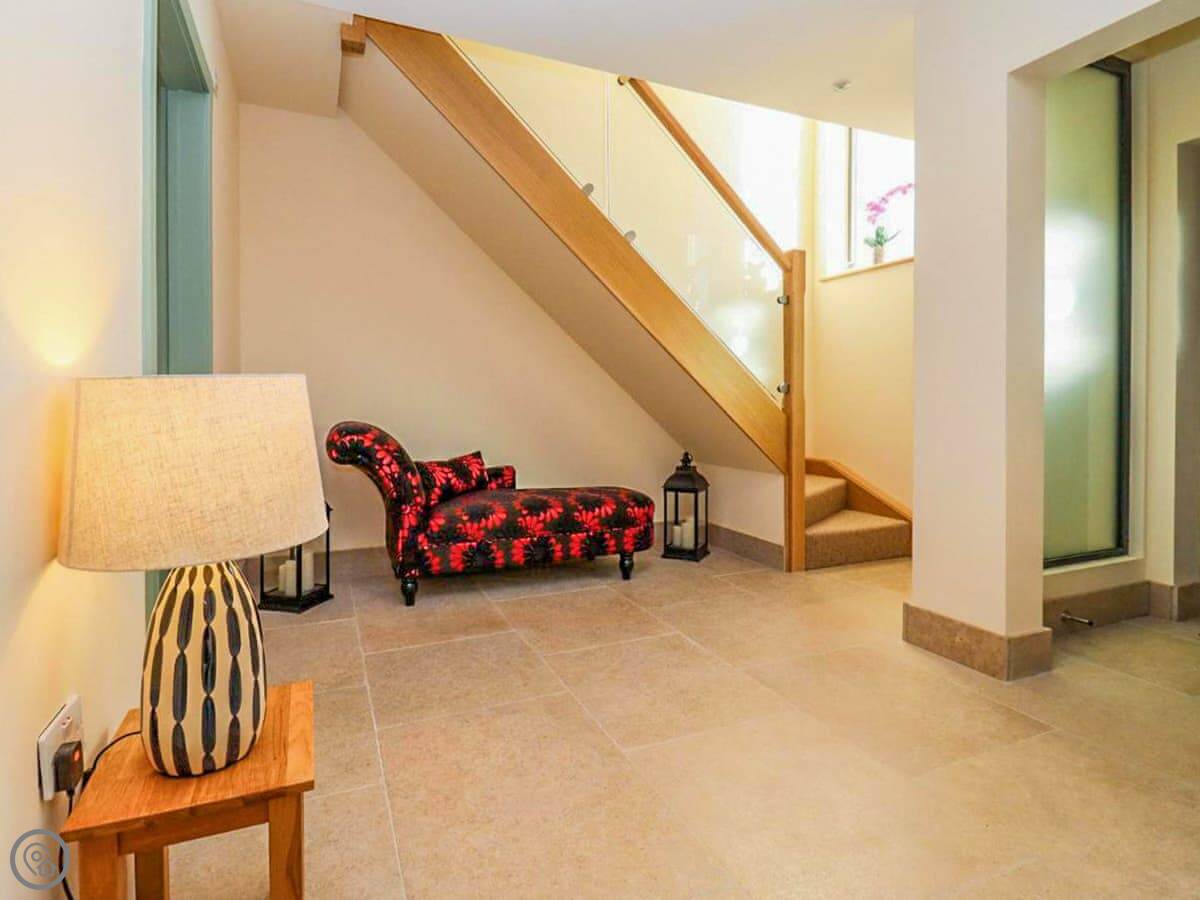 Inside, it's got a washing machine, dishwasher, WiFi and TV. Bedding and towels are included. There's a cot and a highchair if you need them. You can bring one dog.