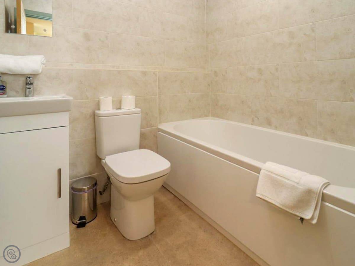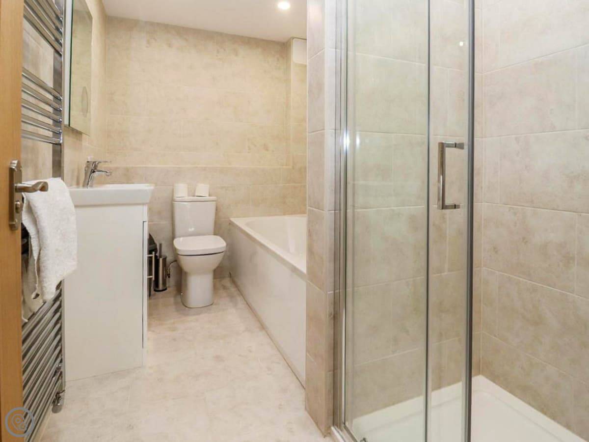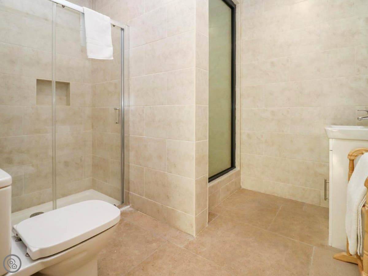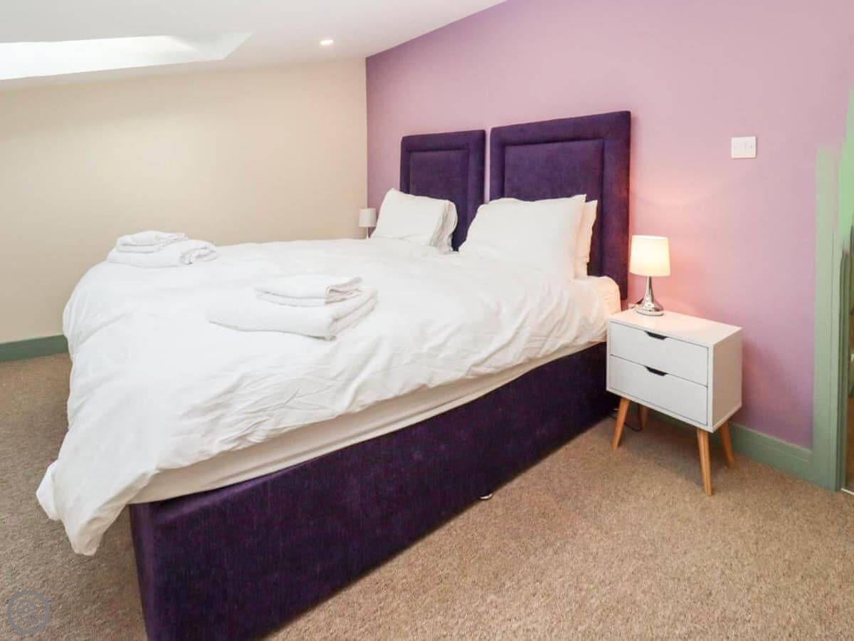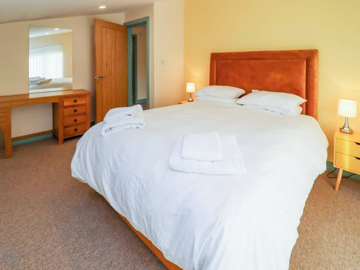 Inside, it's got a washing machine, dishwasher, WiFi and TV. Bedding and towels are included. There's a cot and a highchair if you need them. You can bring one dog.