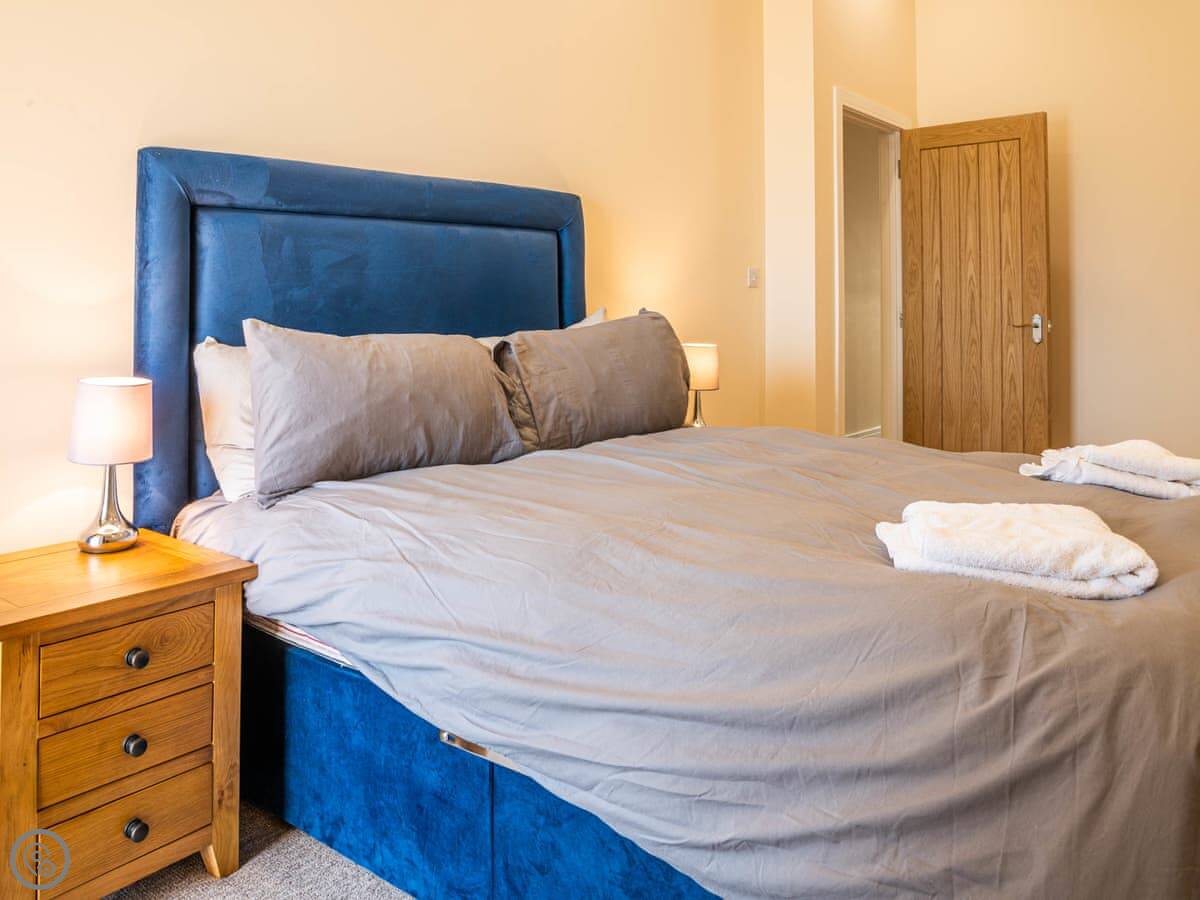 It sleeps eight. There are four bedrooms and three bathrooms. It's a 4 Star place, so it's well-finished and comfortable. The layout is open plan downstairs.
