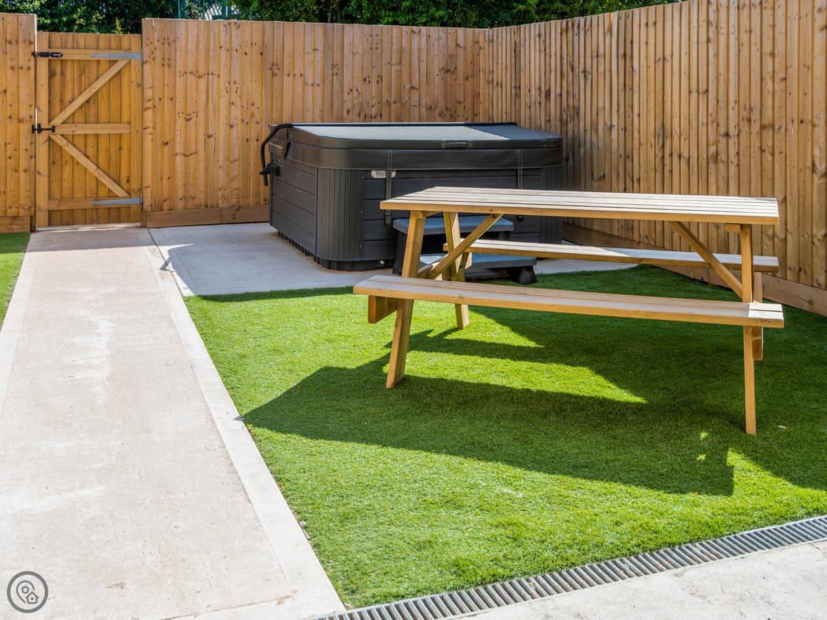 You've got a private patio with a hot tub. Bedding and towels are included. There's a washing machine, dishwasher, and an electric vehicle charger. On-site parking. One well-behaved dog is welcome. We can provide a cot.