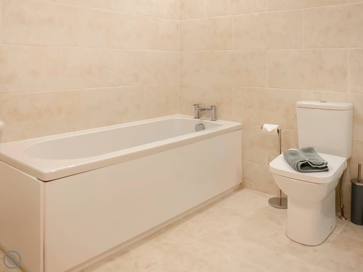 The inside is done in a clean, modern style. It's not cluttered. You get the usual things: a washing machine, dishwasher, WiFi, TV. Bedding and towels are included. There's a cot and a highchair if you need them.