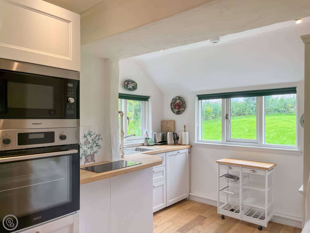 It's got a 4 Star rating, which is about right. It's modern inside, clean and straightforward. The living area and kitchen are open-plan. Upstairs is the bedroom. The stairs are fine, but mind your head on the ceiling beam at the top.