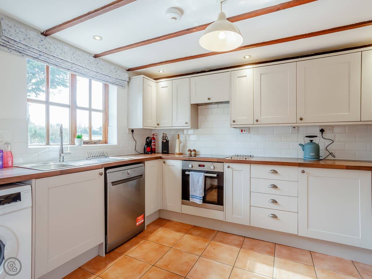 Inside, you've got a washing machine, dishwasher, TV, and WiFi. The kitchen has what you'd need. Bedding and towels are included. There's parking for two cars on the drive. We provide a cot and a highchair if you need them.