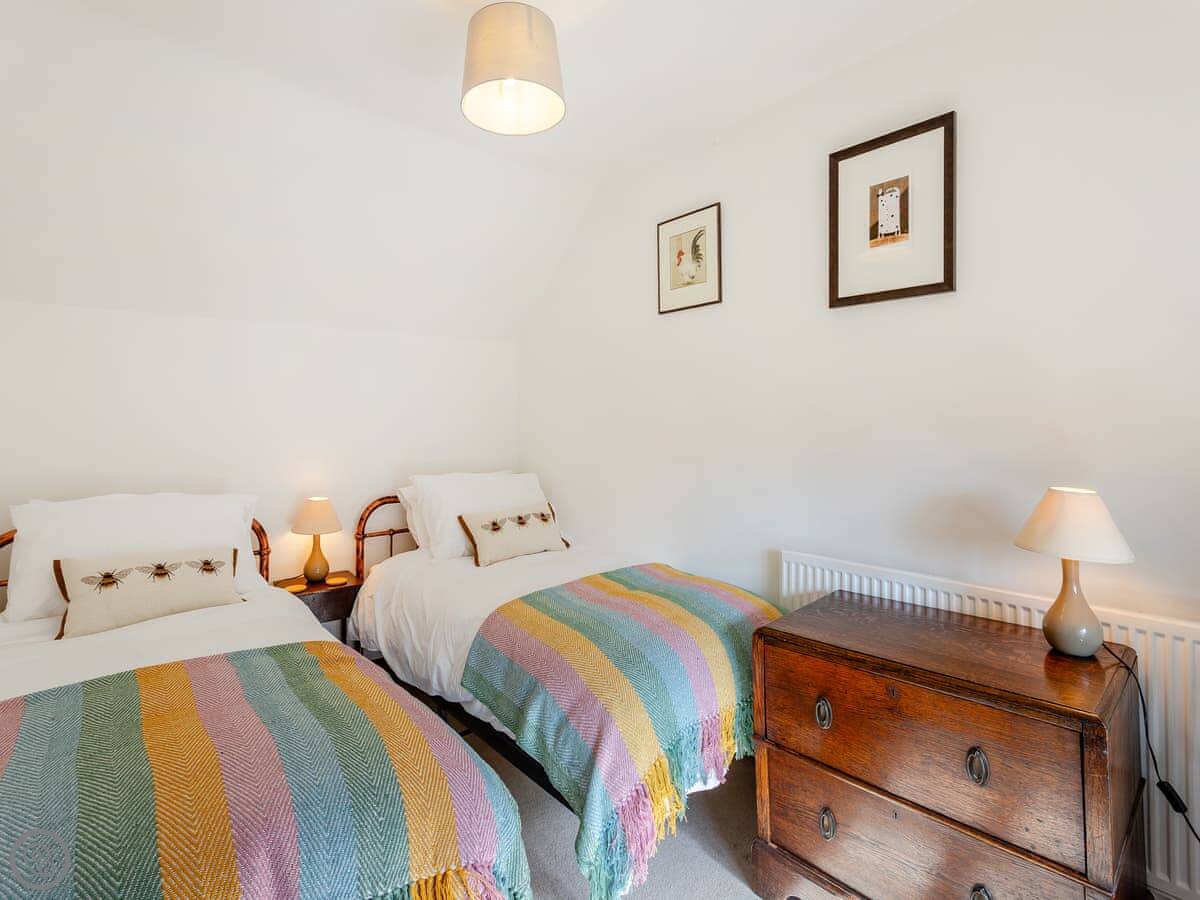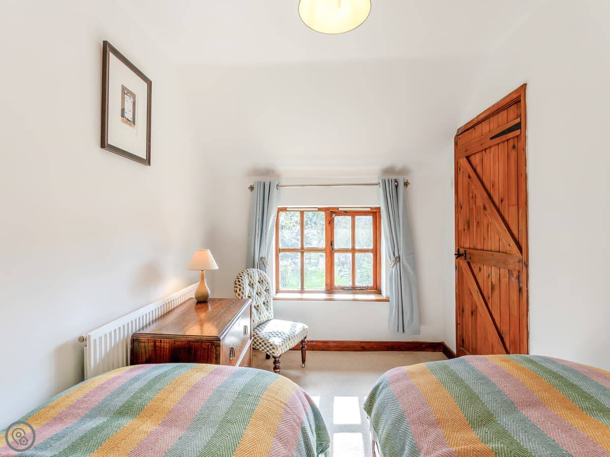 The cottage sleeps four. Two bedrooms, one bathroom downstairs. It's got a 4 Star rating. It's comfortable, with a wood burning stove in the living room. You provide the wood. The stairs to the bedrooms are steep. There's a stairgate at the bottom.