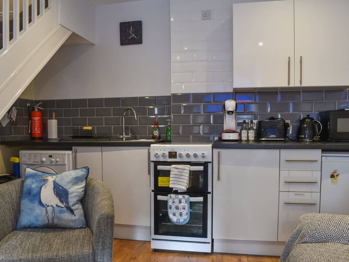 Facilities at the cottage: all bedding and towels are included. There’s a washing machine, WiFi, and a TV. Parking is on-street in the cul-de-sac.