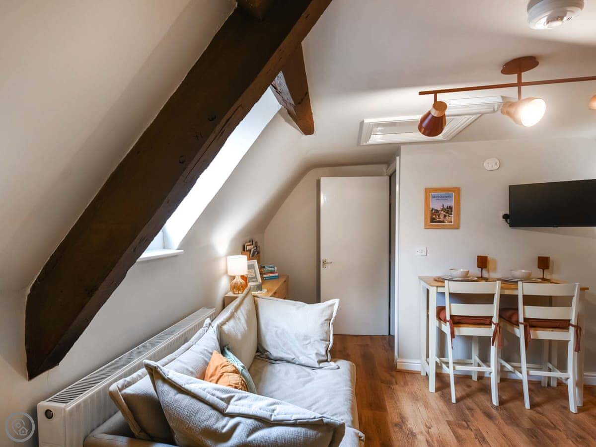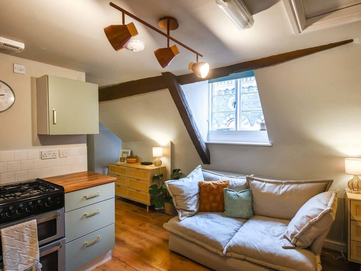The Moorgate Loft. It's a one-bedroom apartment for two people, up on the second floor of an old building in the middle of Bridgnorth. It’s got a 4 Star rating.