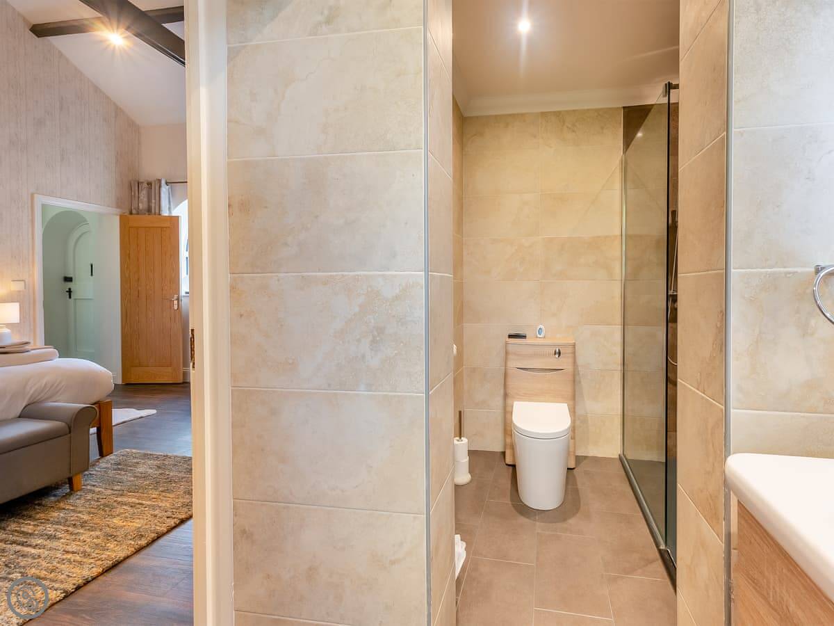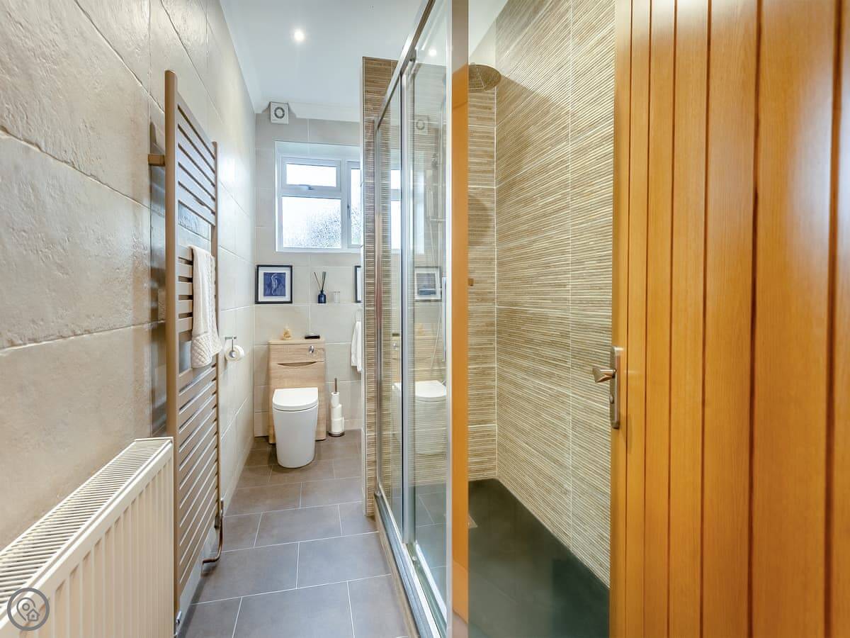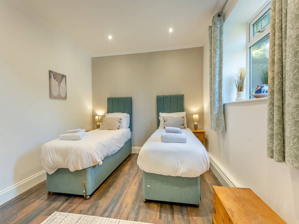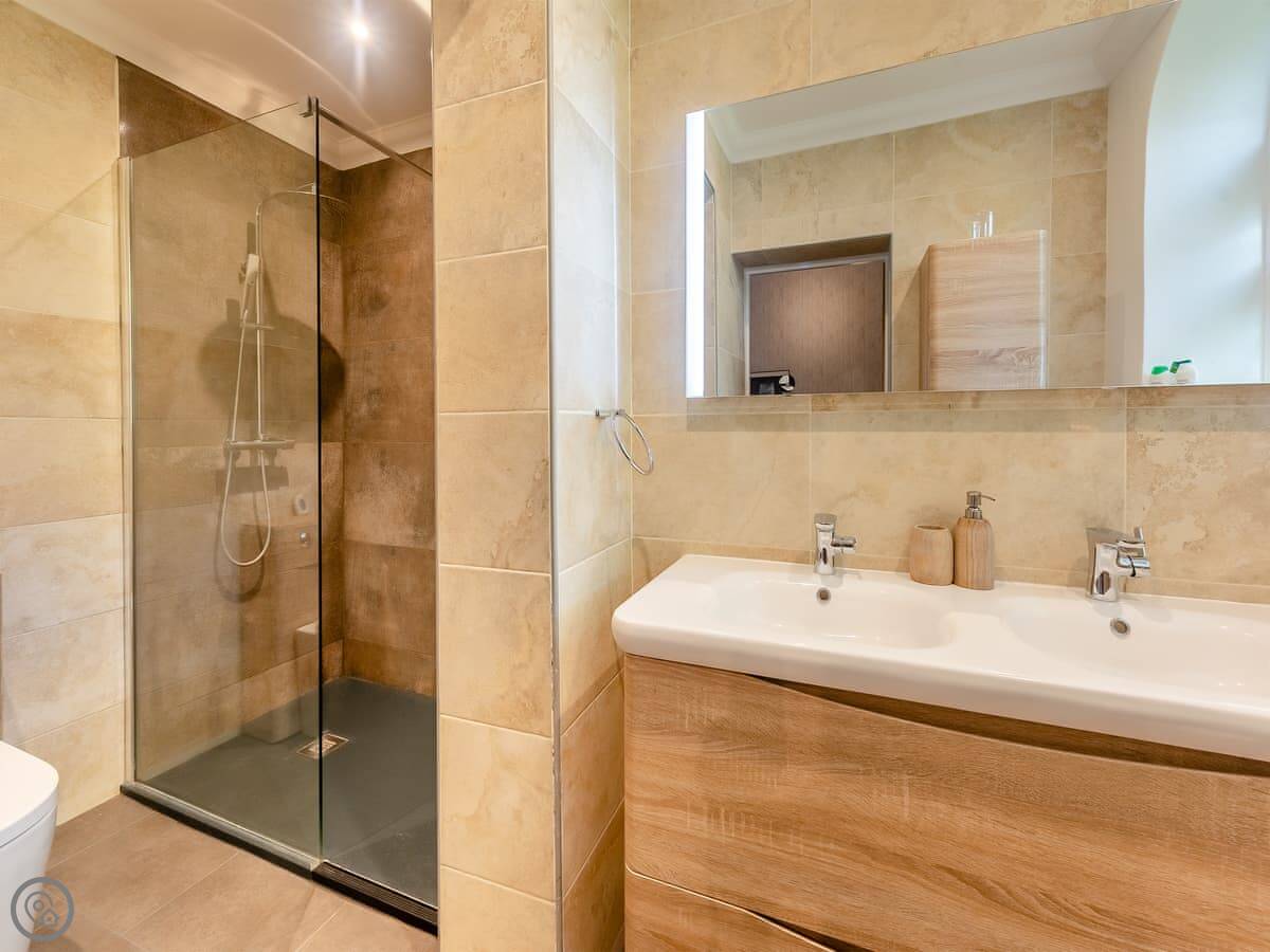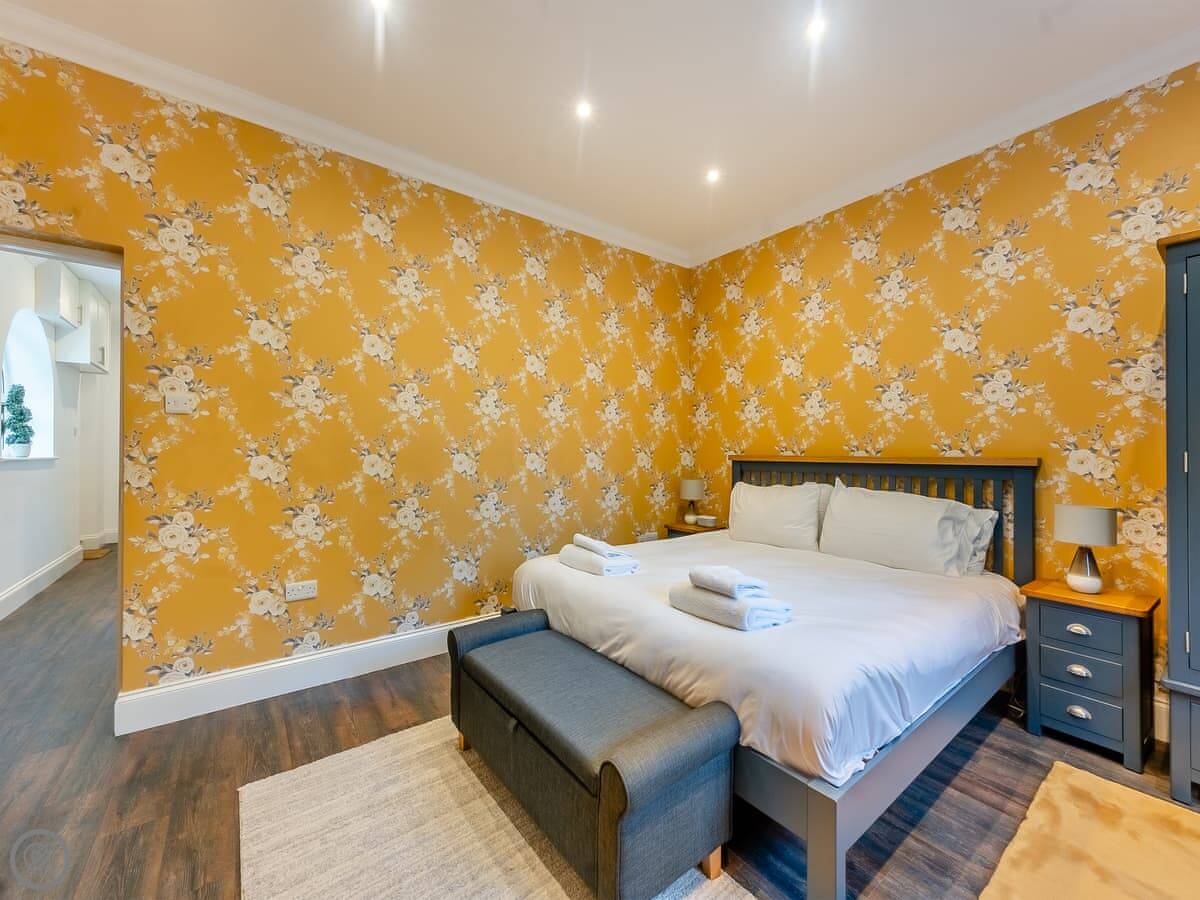 It sleeps six. Three bedrooms. Two bathrooms, one is an ensuite off the main bedroom. One bedroom has twin beds that zip together into a kingsize if you ask when you book. The place has a 5 Star rating. It's been done to a good standard, comfortable, clean.