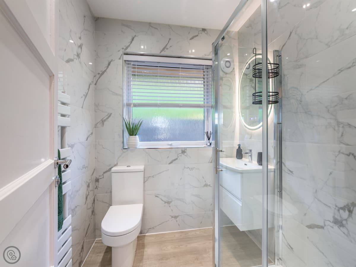 The space is open plan: kitchen, dining and living area together. It has a dishwasher, washing machine, and good WiFi. The heating is electric, including one of those electric wood-burner effect stoves. We allow up to two dogs.