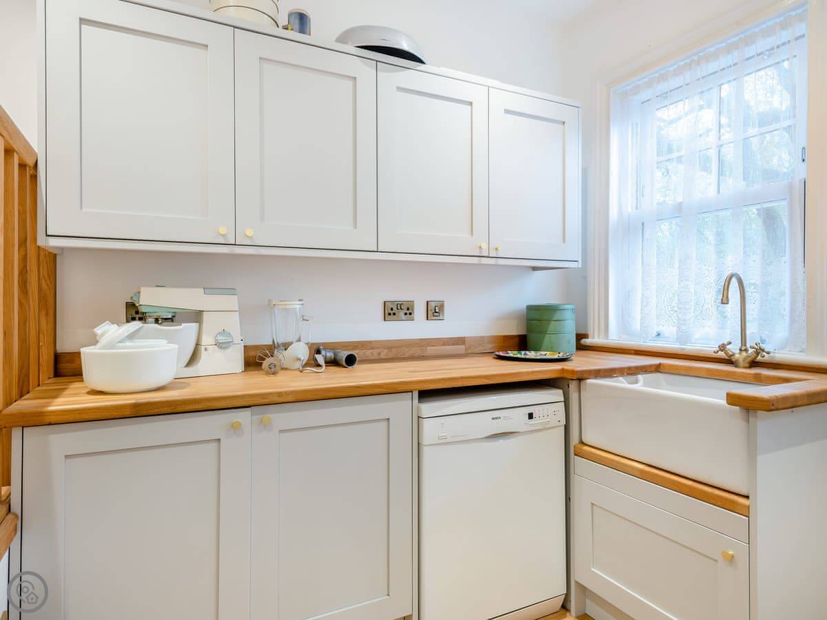 In the house, you’ve got a washing machine, dishwasher, WiFi, and TVs. Bedding and towels are included. The kitchen has what you need to cook for a crowd.