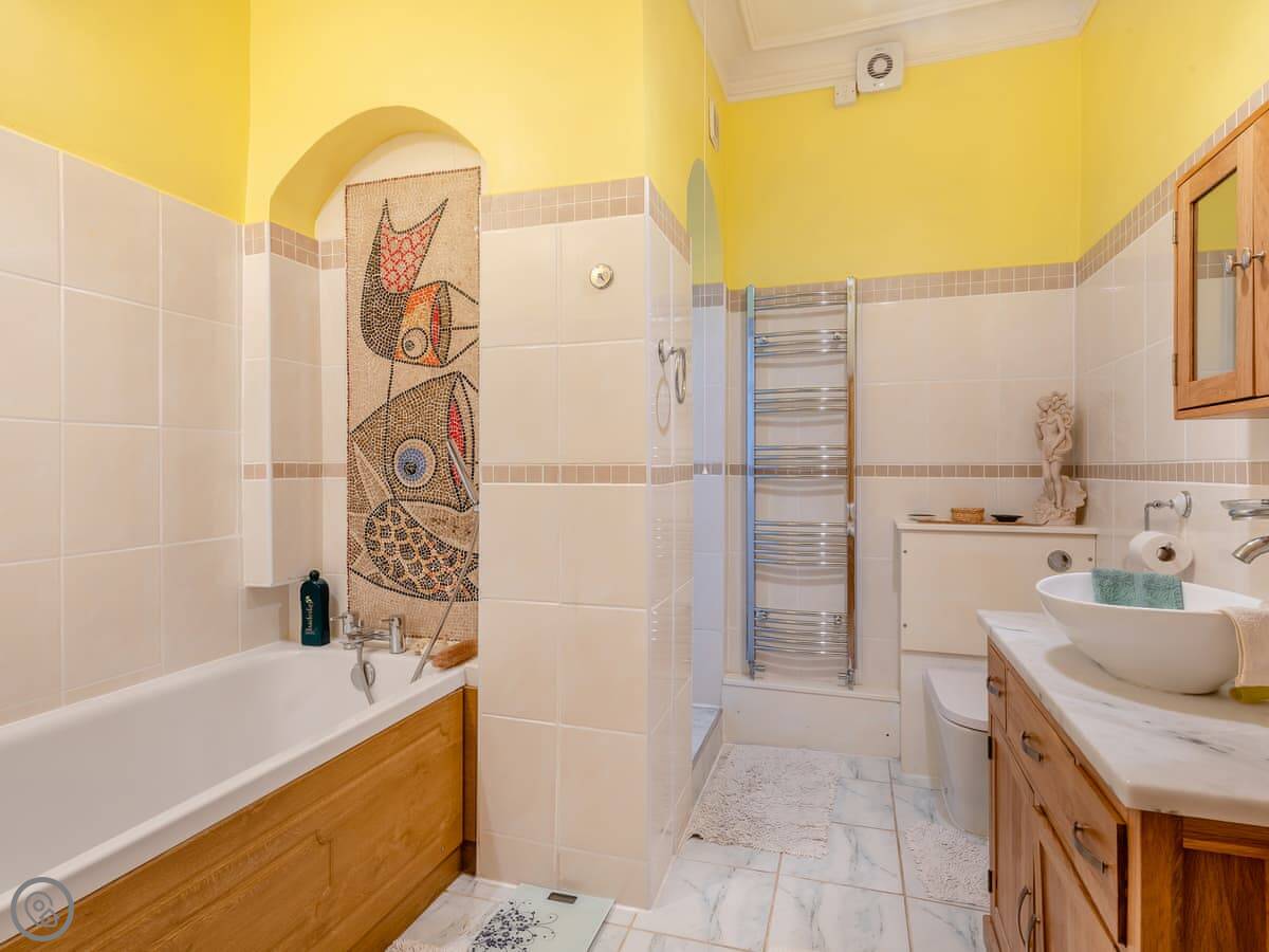 You’ve got two bathrooms for the whole house. The stairs are the original ones, so they’re a bit steep and turn corners. Something to be aware of.